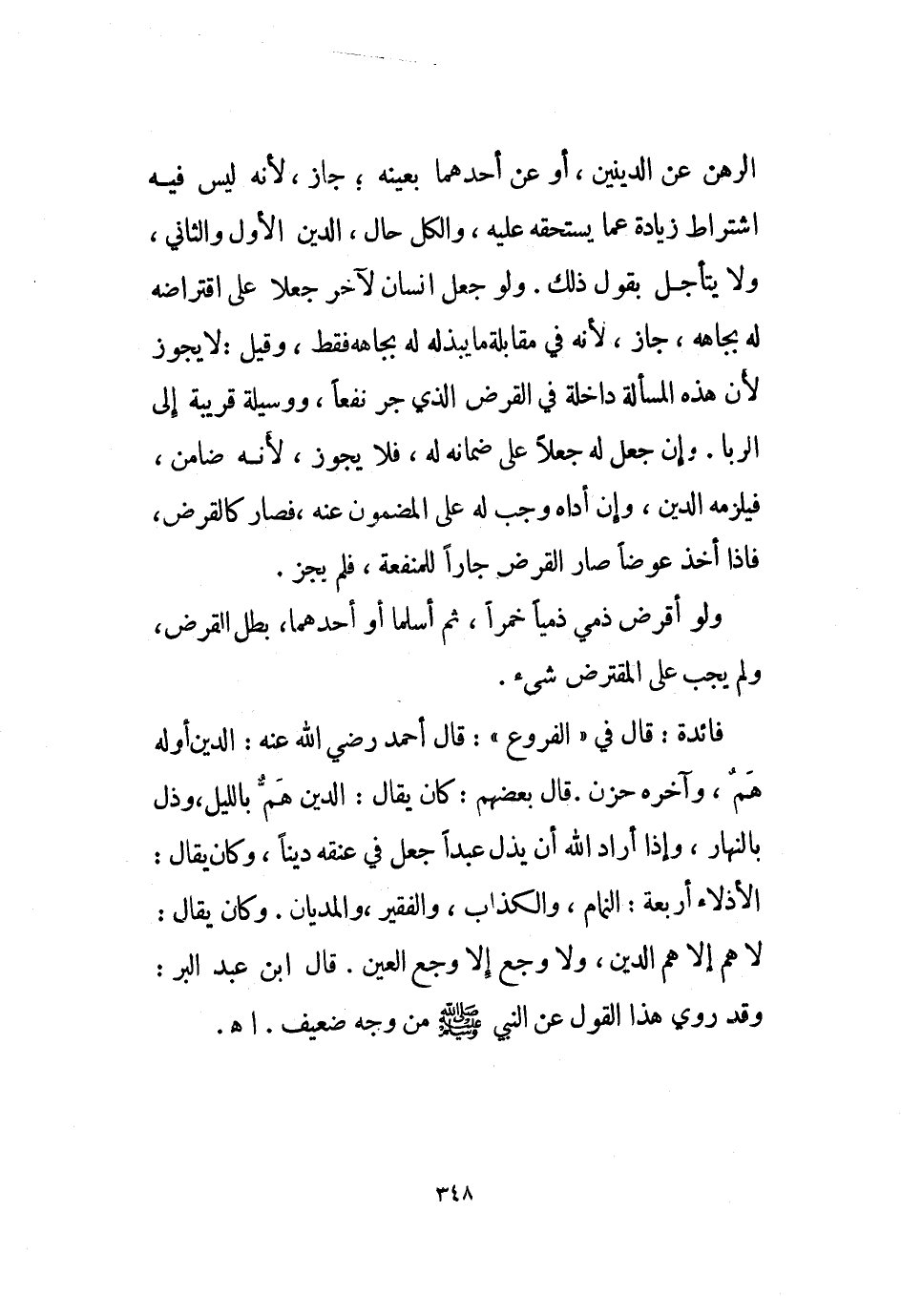 أذن له في القبض من غير توكيل في نصيبه، فقبضه لنفسه، لم يحاصصه، أو ما لم يتلف مقبوض، فيتعين غريم، والتالف من حصة قابض؛ لأنه قبضه لنفسه، ولا يضمن لشريكه شيئًا، لعدم تعديه؛ أنه قدر حصته، وإنما شاركه لثبوته مشتركًا، ومن استحقَّ على غريمِهِ مِثْلَ ماله عليه من دين جنسًا وقدرًا وصفة، حالَّين أو مؤجلين أجلاً واحدًا، كثمنين اتحد أجلهما؛ تساقطا إن استويا، أو سقط من الأكثر بقدر الأقل إن تفاوتا قدرًا بدون تراض؛ لأنه لا فائدة في أخذ الدين من أحدهما، ثم رده إليه، ولا يتساقطان إذا كان الدينان دين سلم، أو كان أحدهما دين سلم، ولو تراضيا؛ لأنه تصرف في دين سلم قبل قبضه، أو تعلق بأحد الدينين حق، بأن بيع الرهن لتوفية دينه من مدين غير المرتهن، أو عين المفلس بعض ماله لبعض غرمائه بثمن في الذمة من جنس دينه؛ فلا مقاصة، لتعلق حق الغرماء أو المرتهن بذلك الثمن، ومن عليها دين من جنس واجب نفقتها، لم يحتسب به مع عسرتها؛ لأن قضاء الدين بما فضل.