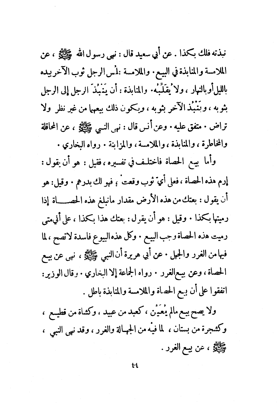ولا يصح بيع ثوب مطوي، أو ثوب نُسِجَ بعضُه، على أن ينسج بقيته للجهالة. قال في «شرح المنتهى» : حيث لم ير منه ما يدل على بقيته؛ فإن الناس لم يزالوا في جميع الأمصار والأعصار يتبايعون الثياب المطوية، ويكتفون بتقليبهم منها ما يدل على بقيتها. اهـ. فإن أحضر البائع ما نسجه من الثوب، وبقية السُدى واللُّحمة، وباعها مع الثوب، وشرط على البائع نسجها؛ صح البيع والشرط.