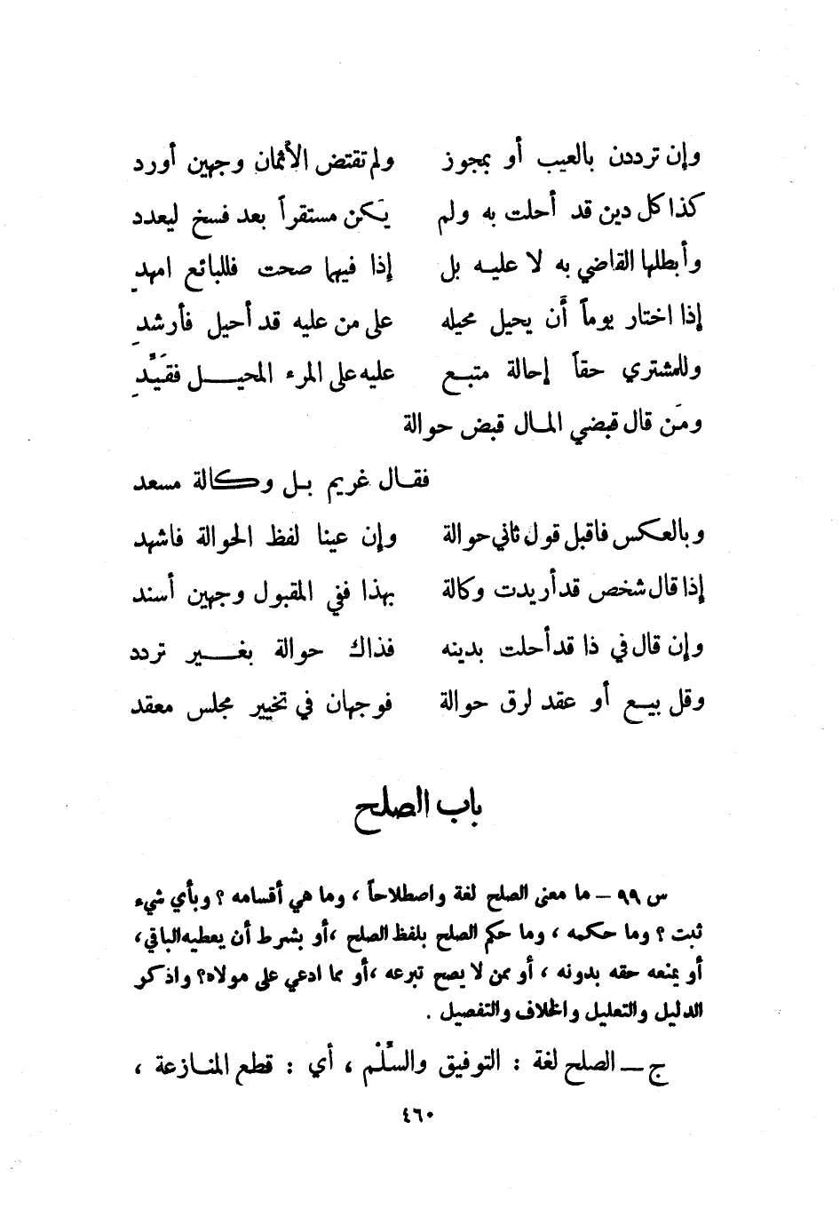 ولا تصح بزوجة لزوجها في حق الزوجية له عليها، ولا بشاهد؛ لأن الحق عليهما لا يمكن استيفاؤه من الكفيل، ولا تصح الكفالة بمكاتب لدين كتابة؛ لأن الحضور لا يلزمه إذ له تعجيز نفسه، ولا تصح الكفالة إلى أجل مجهول أو بشخص مجهول؛ أما عدم صحتها إلى أجل مجهول؛ فلأن المكفول ليس له وقت يستحق المطالبة فيه؛ وأما عدم صحتها بشخص، فلأنه غير معلوم في الحال ولا في المآل، فلا يمكن تسيلمه، بخلاف ضمان دين مجهول يؤول إلى العلم، ولو في ضمان كإلى مجيء المطر ونحوه، أو قال: ضمنت أحد هذين، فلا يصح الضمان لما تقدم.