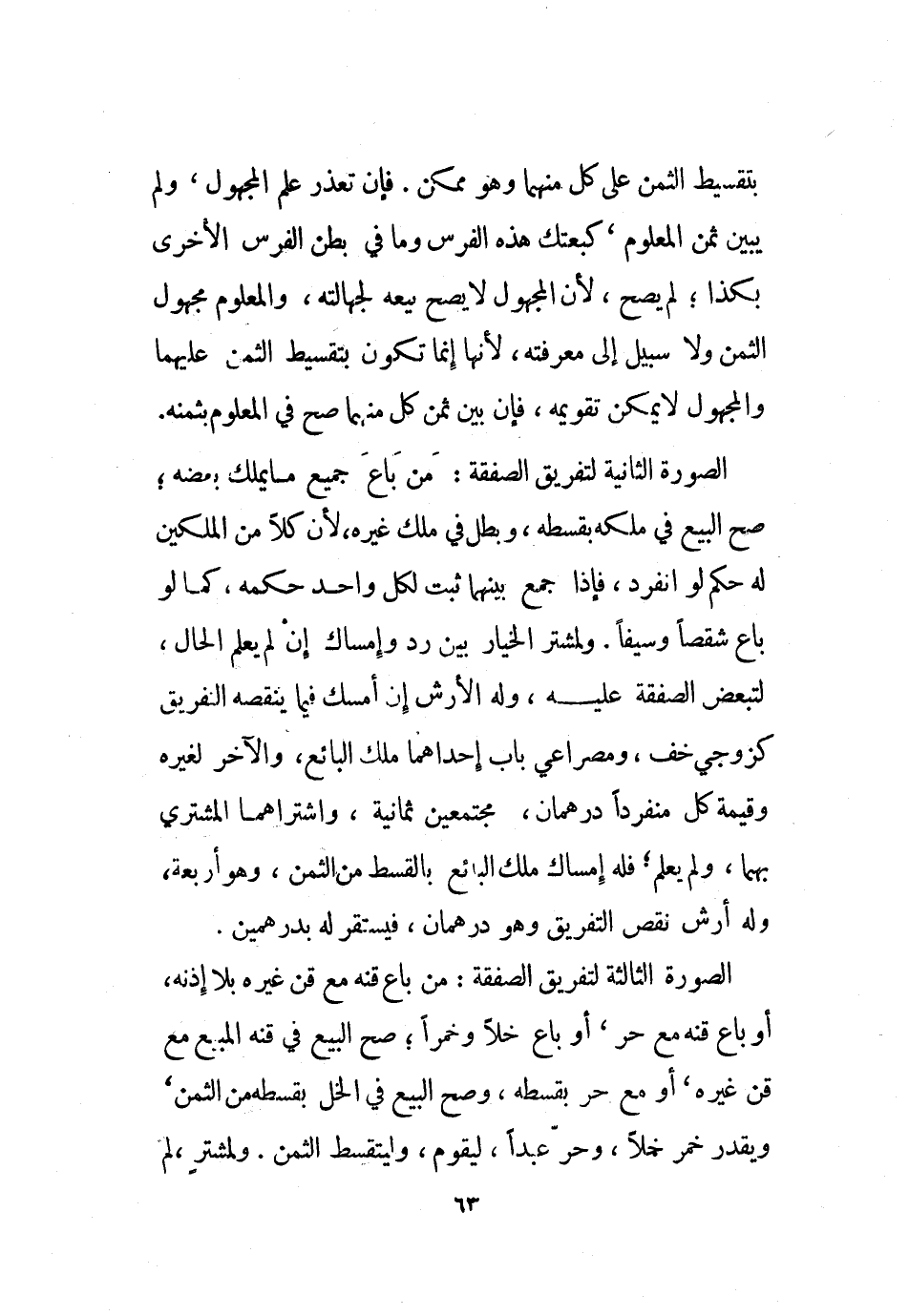 كل قفيز بدرهم، والقطيع كل شاة بدرهم، وإن باعه الصبرة كل قفيز بدرهم، والقطيع كل شاة بدرهم، والثوب كل ذراع بدرهم، صح البيع؛ لأن المبيع معلوم المشاهدة، والثمن يعرف بجهة لا تعلق بالمتعاقدين، وهو كيل الصبرة، أو ذرع الثوب أو عد القطيع.