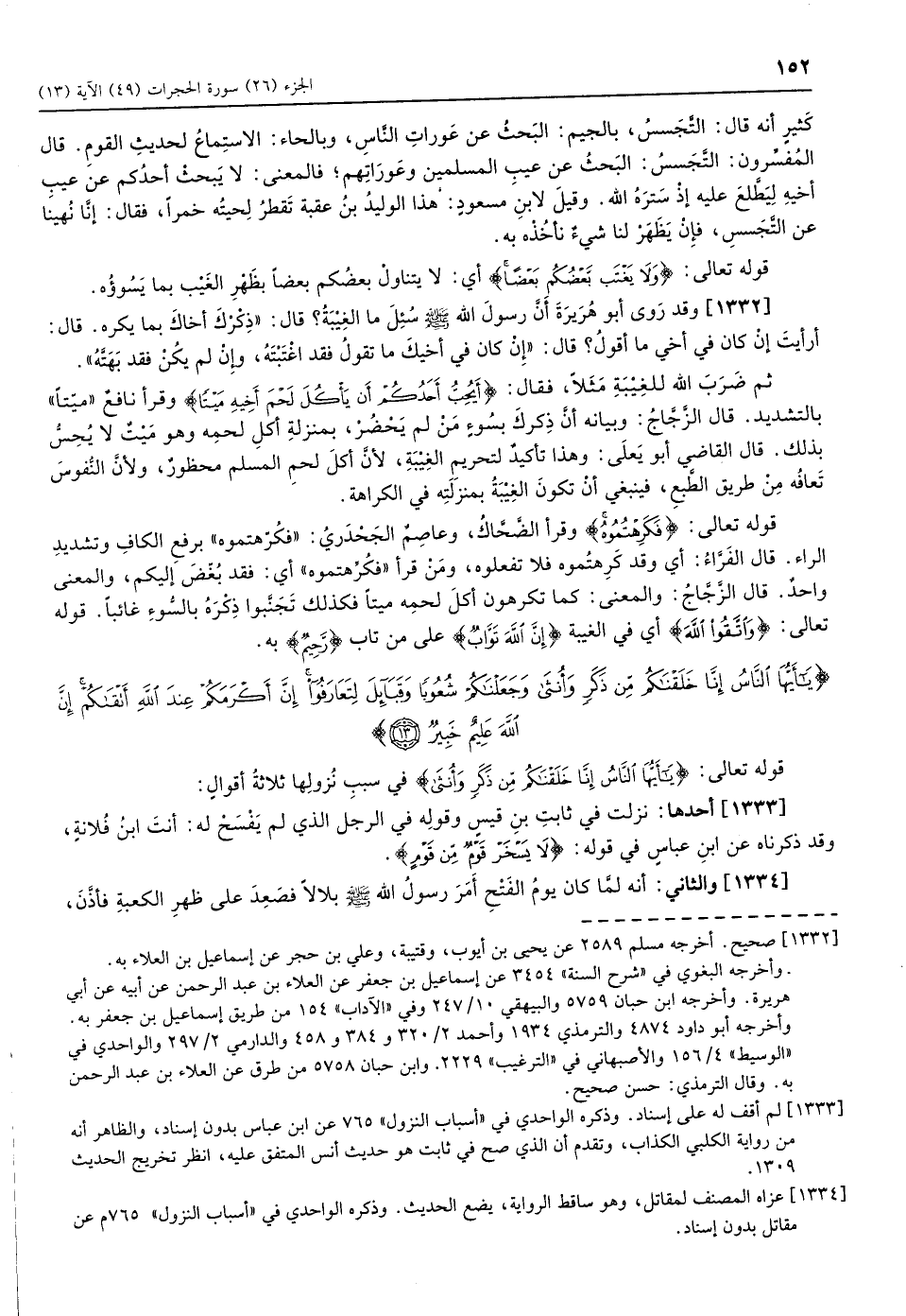 (1332) وقد روى أبو هريرة أنّ رسول الله صلّى الله عليه وسلم سئل ما الغيبة؟ قال: «ذِكْرُكَ أخاك بما يََكره. قال: