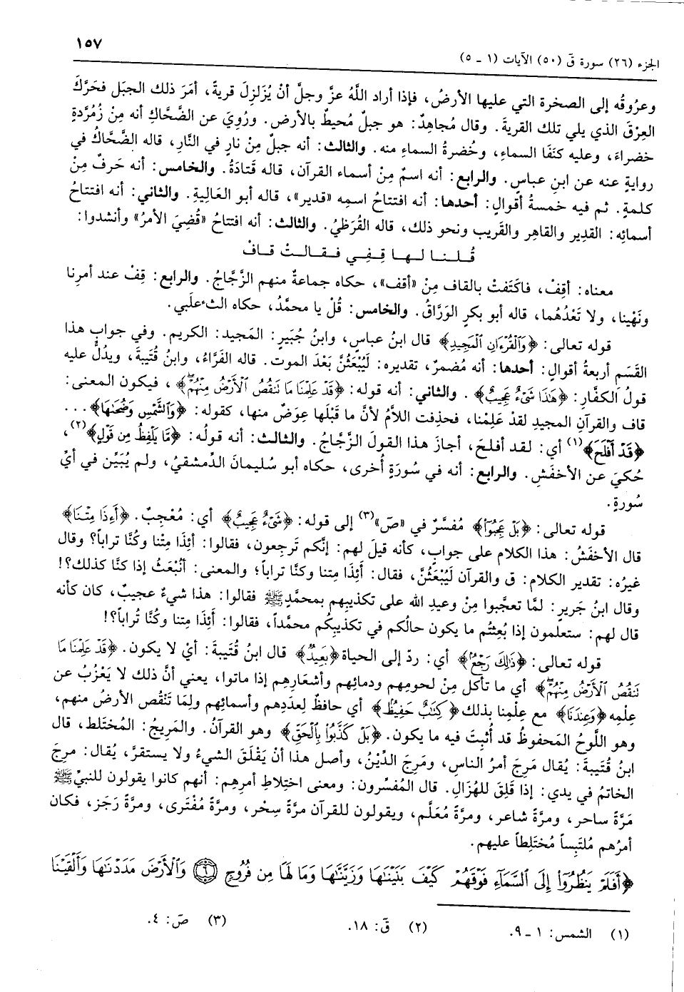 قوله تعالى: وَالْقُرْآنِ الْمَجِيدِ قال ابن عباس، وابن جبير: المَجيد: الكريم. وفي جواب هذا القسم أربعة أقوال: أحدها: أنه مُضمر، تقديره: لَيُبْعَثُنَّ بَعْدَ الموت. قاله الفراء، وابن قتيبة، ويدُلُّ عليه قولُ الكفار: هذا شَيْءٌ عَجِيبٌ. والثاني: أنه قوله: قَدْ عَلِمْنا ما تَنْقُصُ الْأَرْضُ مِنْهُمْ، فيكون المعنى: