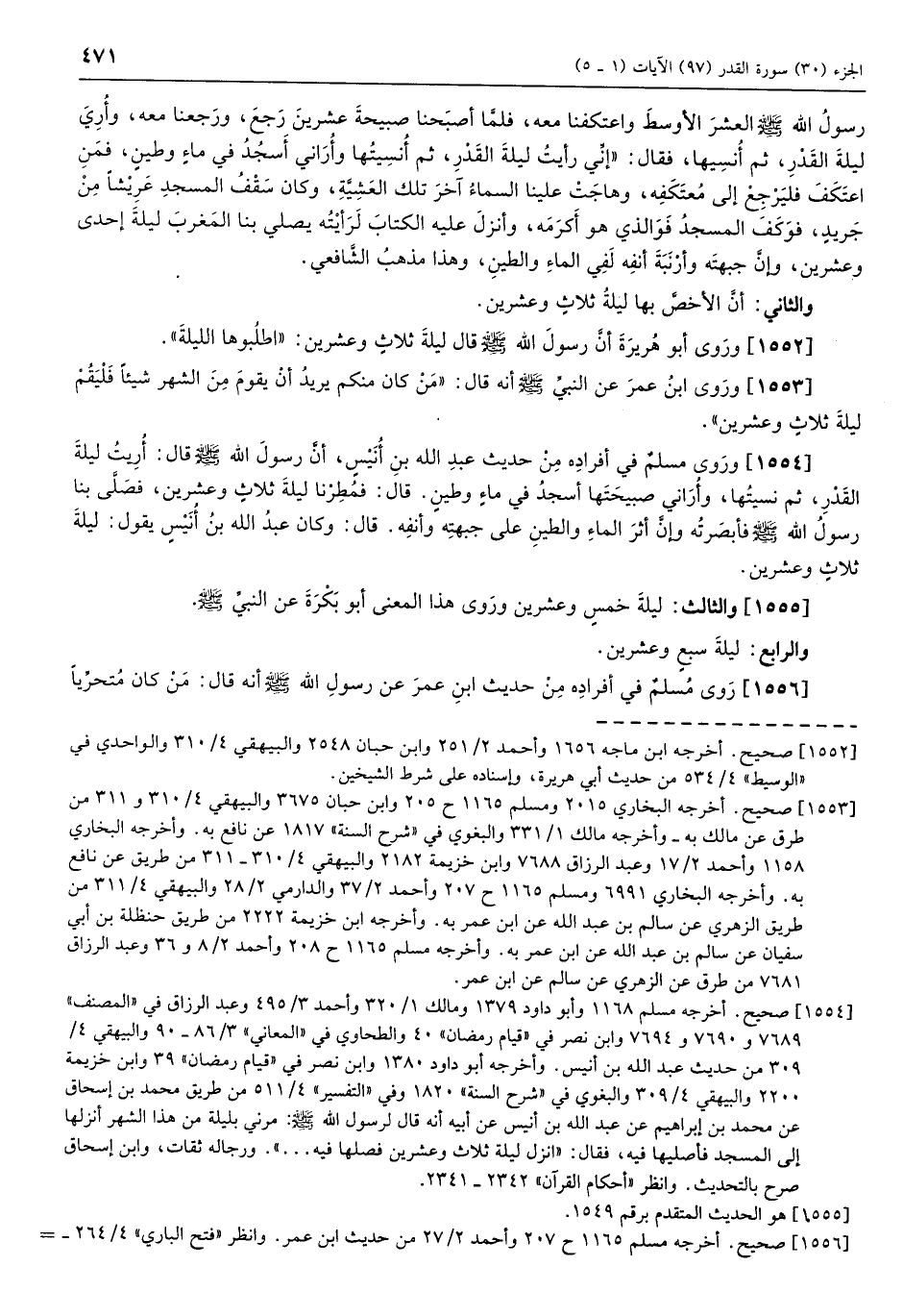 (1552) وروى أبو هريرة أنّ رسول الله صلّى الله عليه وسلم قال ليلة ثلاث وعشرين: «اطلبوها الليلة» .