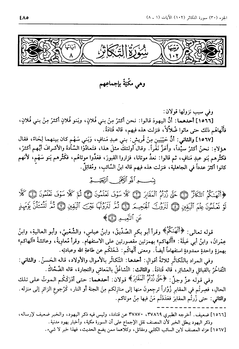 أَلْهاكُمُ التَّكاثُرُ (1) حَتَّى زُرْتُمُ الْمَقابِرَ (2) كَلاَّ سَوْفَ تَعْلَمُونَ (3) ثُمَّ كَلاَّ سَوْفَ تَعْلَمُونَ (4)