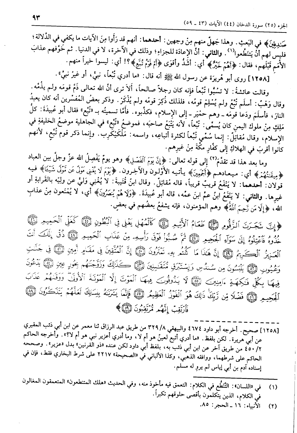 (1258) روى أبو هريرة عن رسول الله صلّى الله عليه وسلّم أنه قال: «ما أدري تُبَّعاً، نبيّ، أو غير نبيّ» .
