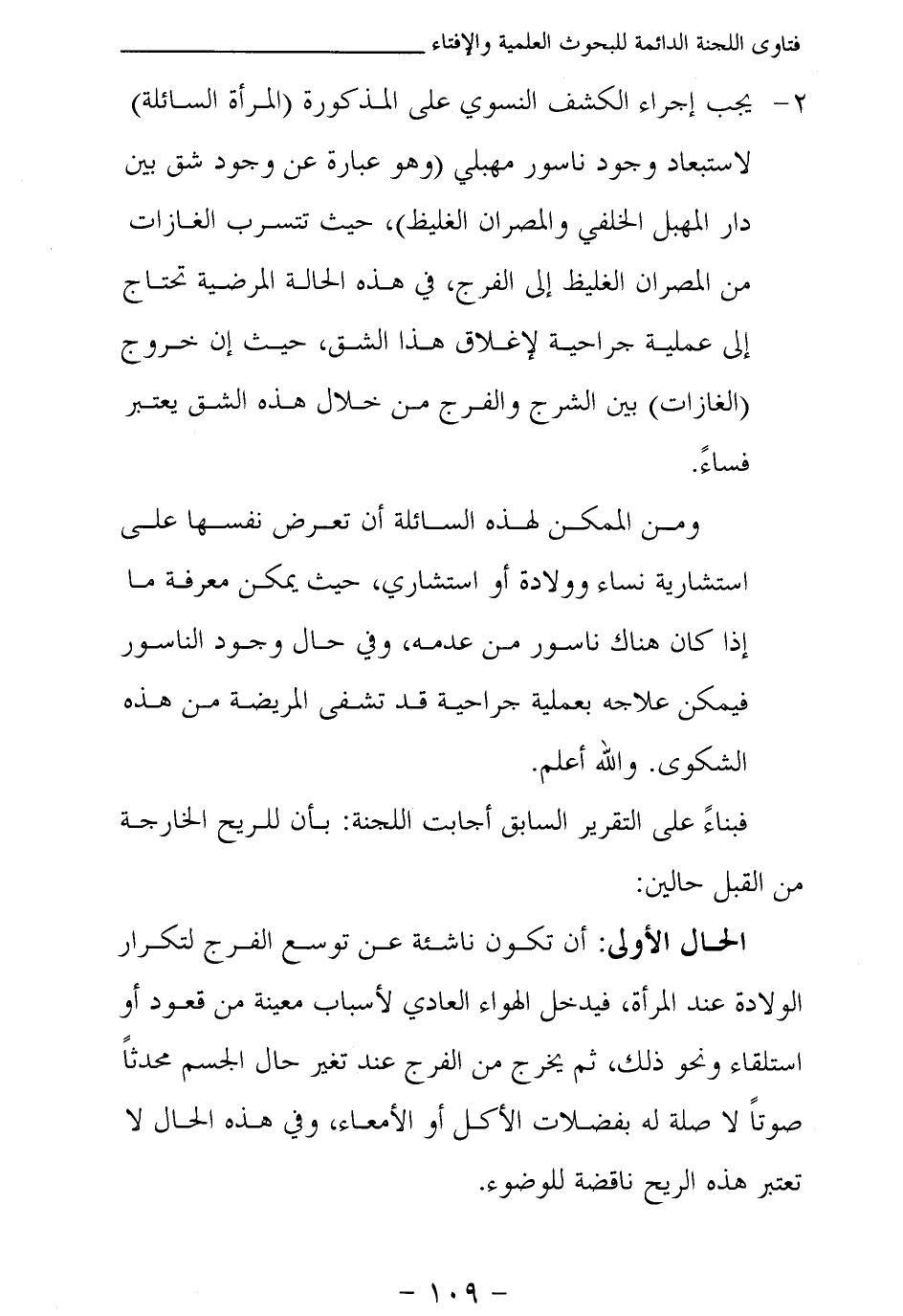 فبناء على التقرير السابق أجابت اللجنة بأن للريح الخارجة من القبل حالين: