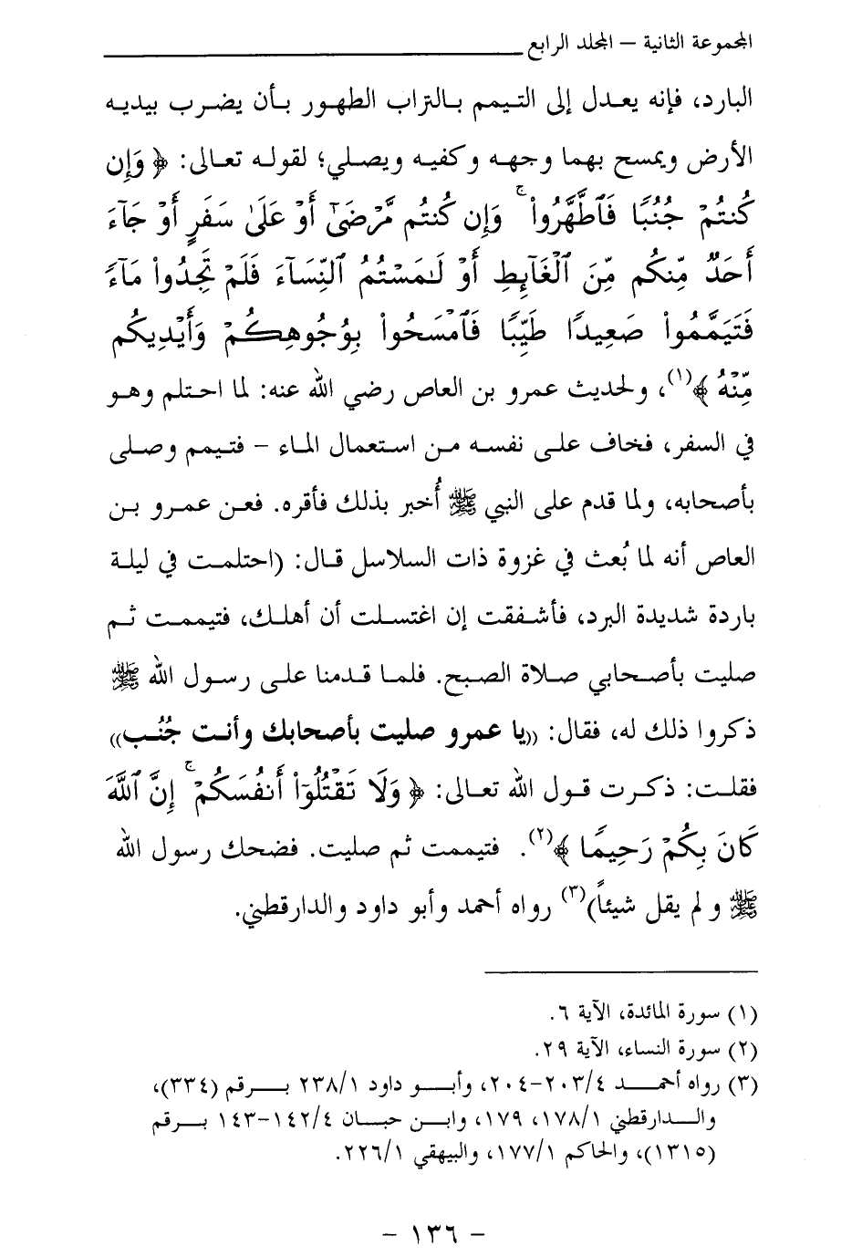 (¬2) رواه أحمد 4 \ 203 - 204، وأبو داود 1 \ 238 برقم (334) ، والدارقطني 1 \ 178، 179، وابن حبان 4 \ 142 - 143 برقم (1315) ، والحاكم 1 \ 177، والبيهقي 1 \ 226