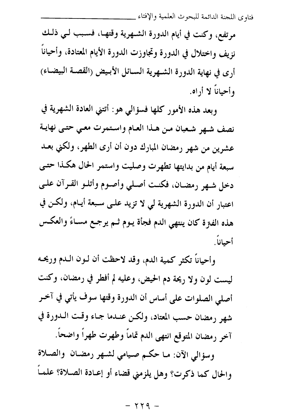 مرتفع، وكنت في أيام الدورة الشهرية وقتها، فسبب لي ذلك نزيفا واختلالا في الدورة وتجاوزت الدورة الأيام المعتادة، وأحيانا أرى في نهاية الدورة الشهرية السائل الأبيض (القصة البيضاء) وأحيانا لا أراه.
