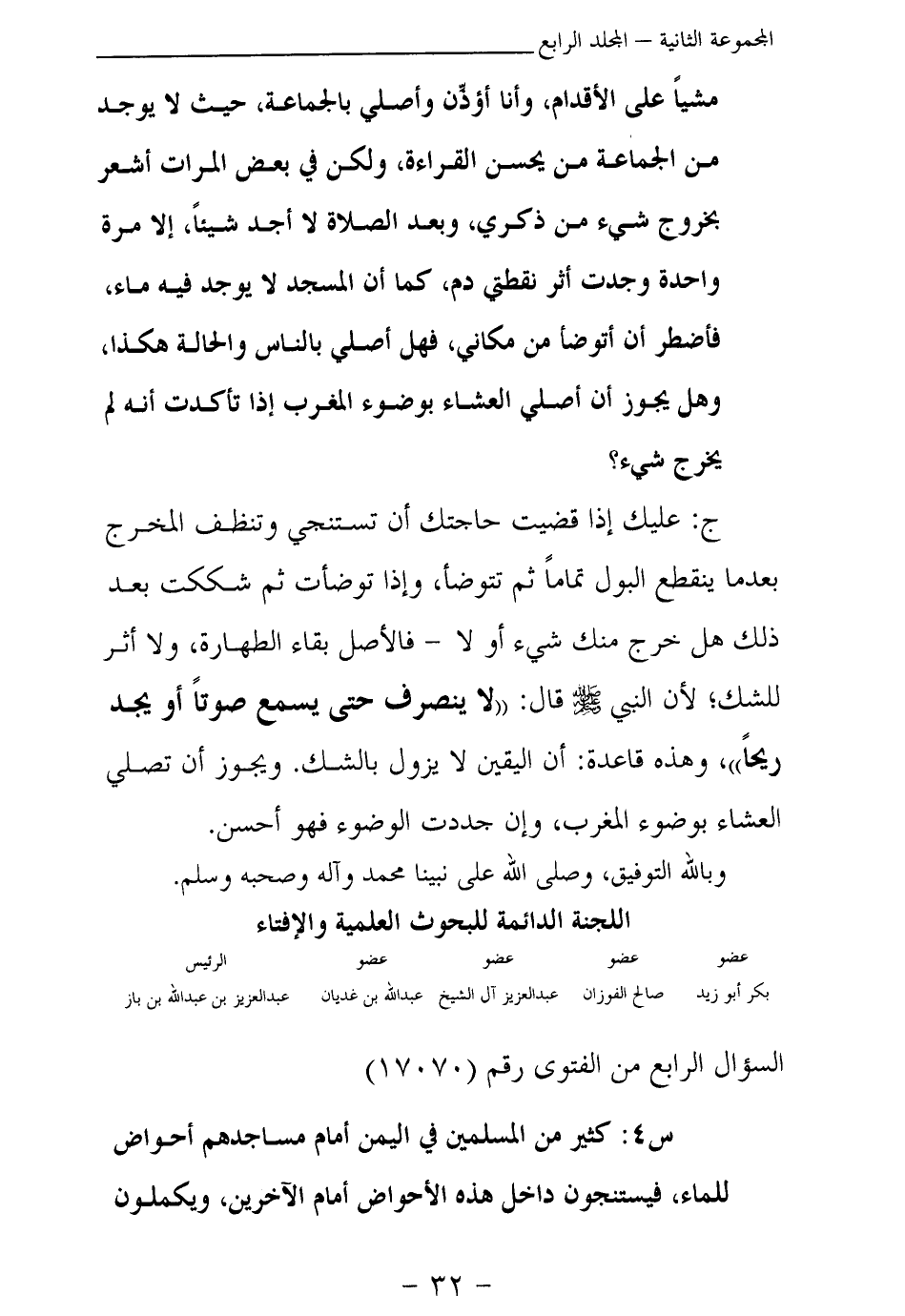س 4: كثير من المسلمين في اليمن أمام مساجدهم أحواض للماء، فيستنجون داخل هذه الأحواض أمام الآخرين، ويكملون