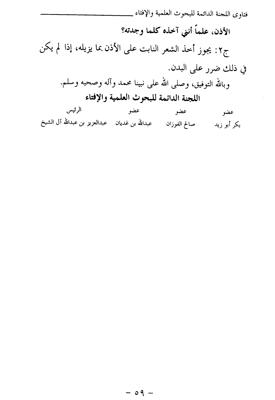 ج 2: يجوز أخذ الشعر النابت على الأذن بما يزيله، إذا لم يكن في ذلك ضرر على البدن.