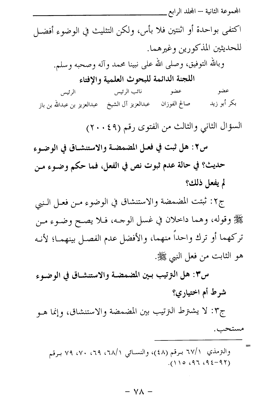 س 2: هل ثبت في فعل المضمضة والاستنشاق في الوضوء حديث؟ في حالة عدم ثبوت نص في الفعل، فما حكم وضوء من لم يفعل ذلك؟