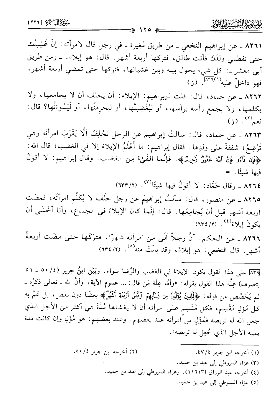 ٨٢٦٥ - عن منصور، قال: سألتُ إبراهيمَ عن رجل حلَف لا يُكَلِّم امرأتَه، فمضَت أربعة أشهر قبل أن يُجامِعَها. قال: إنّما كان الإيلاءُ في الجماع، وأنا أخْشى أن يكونَ إيلاءً (¬٤). (٢/ ٦٣٤)