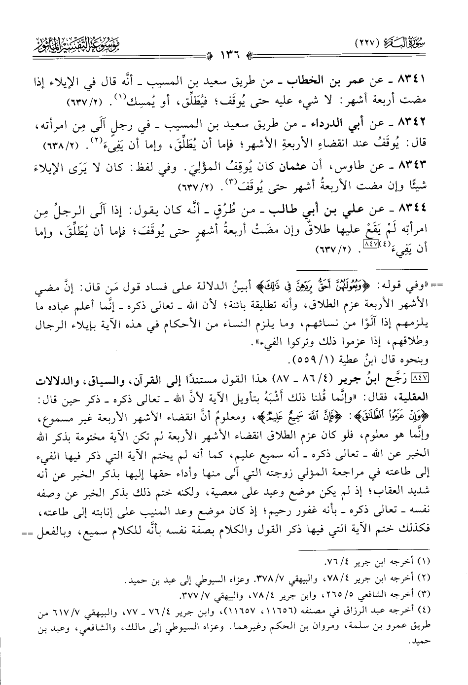 (¬٤) أخرجه عبد الرزاق في مصنفه (١١٦٥٦، ١١٦٥٧)، وابن جرير ٤/ ٧٦ - ٧٧، والبيهقي ٧/ ٦١٧ من طريق عمرو بن سلمة، ومروان بن الحكم وغيرهما. وعزاه السيوطي إلى مالك، والشافعي، وعبد بن حميد.