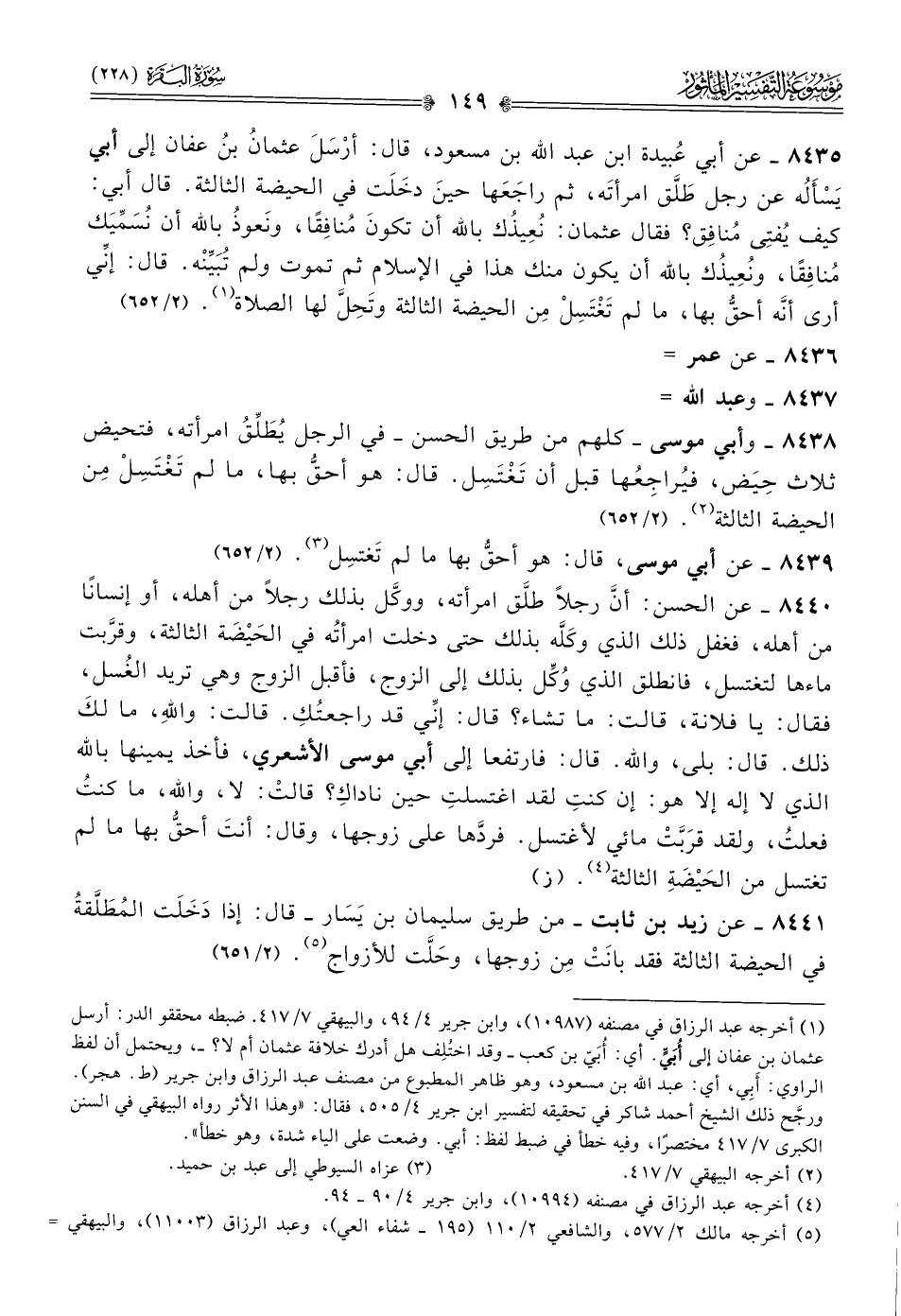 (¬١) أخرجه عبد الرزاق في مصنفه (١٠٩٨٧)، وابن جرير ٤/ ٩٤، والبيهقي ٧/ ٤١٧. ضبطه محققو الدر: أرسل عثمان بن عفان إلى أُبَيٍّ. أي: أُبَيّ بن كعب -وقد اختُلِف هل أدرك خلافة عثمان أم لا؟ -، ويحتمل أن لفظ الراوي: أبِي، أي: عبد الله بن مسعود، وهو ظاهر المطبوع من مصنف عبد الرزاق وابن جرير (ط. هجر). ورجَّح ذلك الشيخ أحمد شاكر في تحقيقه لتفسير ابن جرير ٤/ ٥٠٥، فقال: «وهذا الأثر رواه البيهقي في السنن الكبرى ٧/ ٤١٧ مختصرًا، وفيه خطأ في ضبط لفظ: أبي. وضعت على الياء شدة، وهو خطأ».