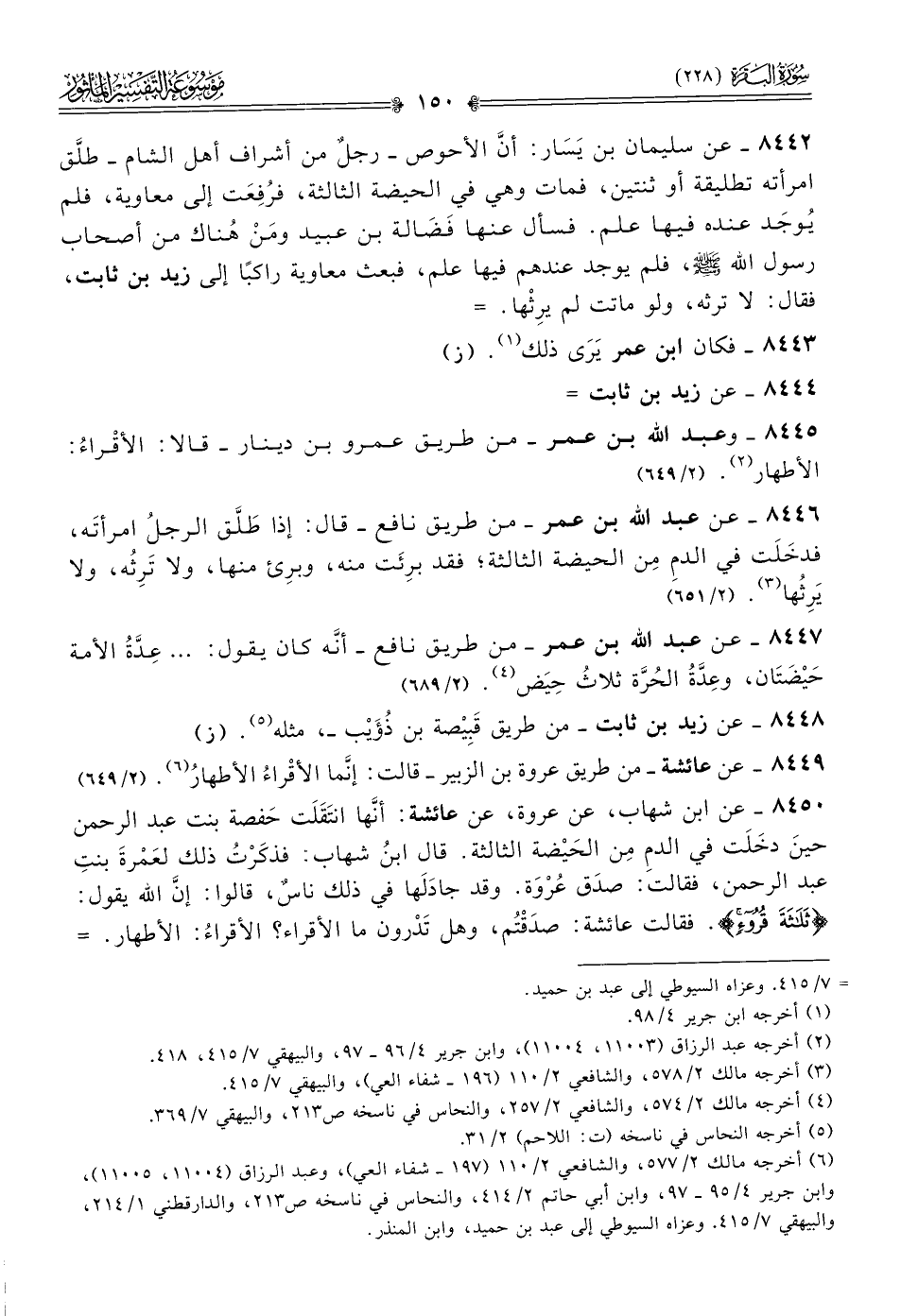 ٨٤٤٧ - عن عبد الله بن عمر -من طريق نافع- أنّه كان يقول: ... عِدَّةُ الأمة حَيْضَتان، وعِدَّةُ الحُرَّة ثلاثُ حِيَض (¬٤). (٢/ ٦٨٩)