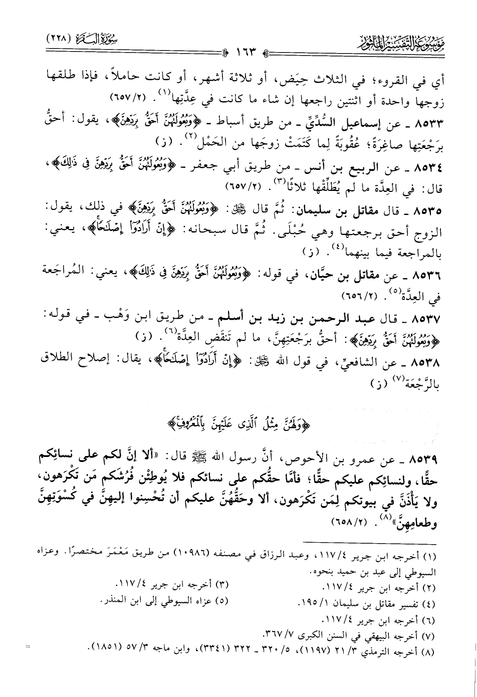 ٨٥٣٤ - عن الربيع بن أنس -من طريق أبي جعفر- {وبعولتهن أحق بردهن في ذلك}، قال: في العِدَّة ما لم يُطَلِّقْها ثلاثًا (¬٣). (٢/ ٦٥٧)