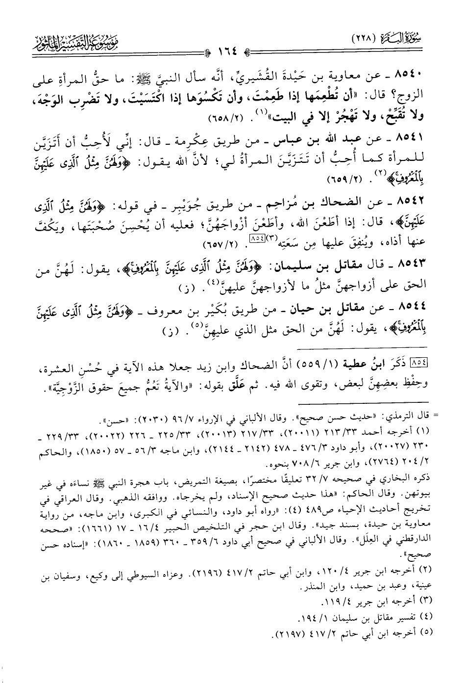 ٨٥٤٤ - عن مقاتل بن حيان -من طريق بُكَيْر بن معروف- {ولَهُنَّ مِثْلُ الَّذِي عَلَيْهِنَّ بِالمَعْرُوفِ}، يقول: لَهُنَّ من الحق مثل الذي عليهِنَّ (¬٥). (ز)