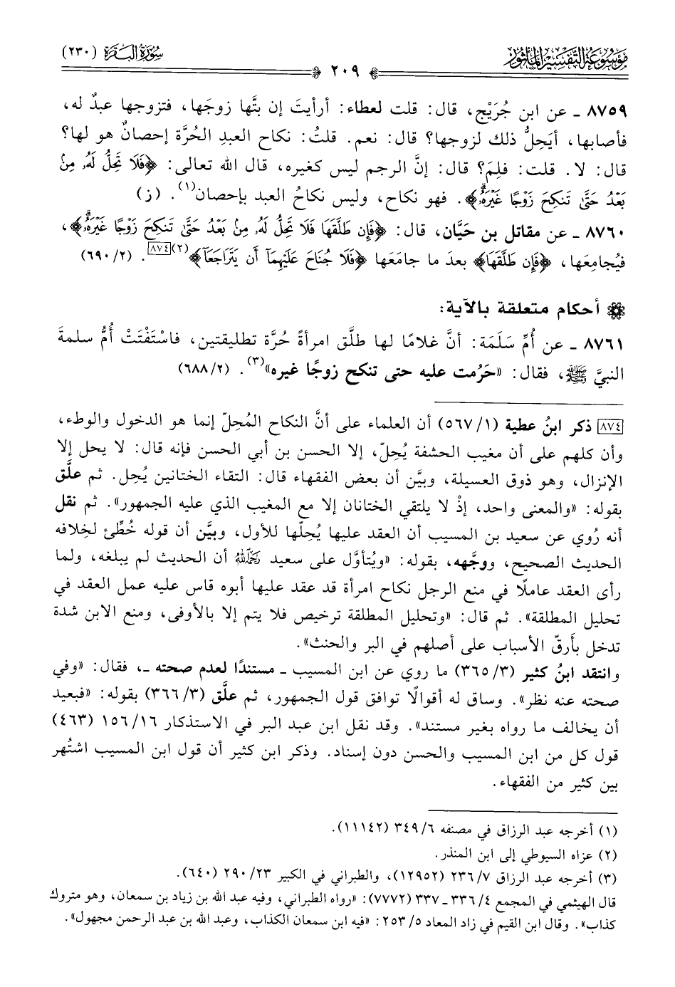 ٨٧٦٠ - عن مقاتل بن حَيّان، قال: {فإن طلقها فلا تحل له من بعد حتى تنكح زوجا غيره}، فيُجامِعَها، {فإن طلقها} بعدَ ما جامَعَها {فلا جناح عليهما أن يتراجعا} (¬٢) [٨٧٤]. (٢/ ٦٩٠)
