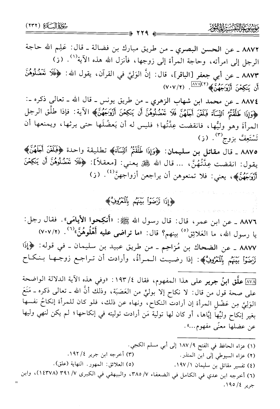 ٨٨٧٣ - عن أبي جعفر [الباقر]، قال: إنّ الوَلِيَّ في القرآن، يقول الله: {فلا تعضلوهن أن ينكحن أزواجهن} (¬٢) [٨٧٨].
