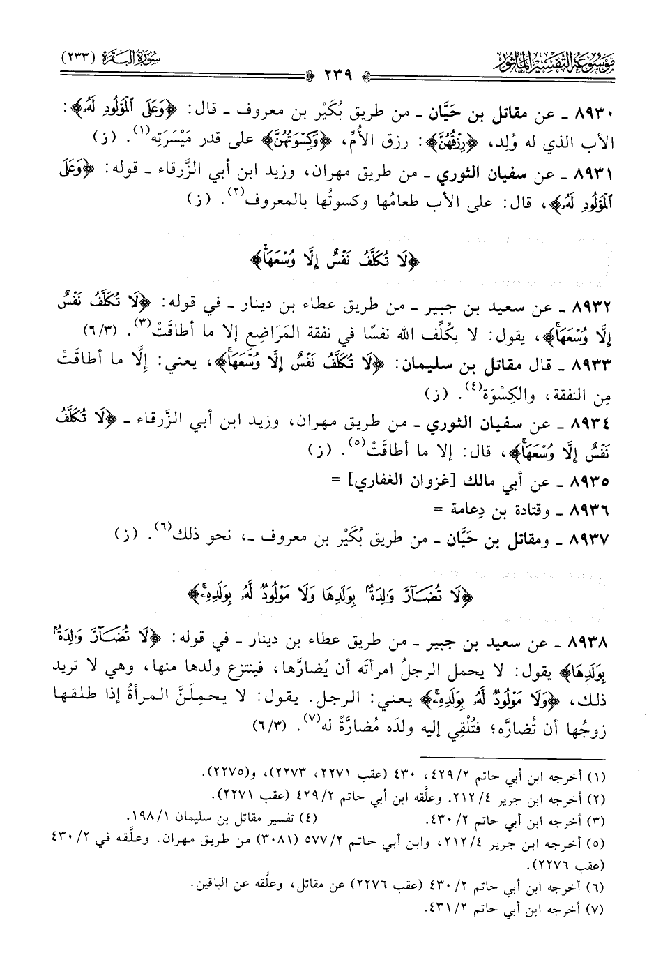 ٨٩٣٣ - قال مقاتل بن سليمان: {لا تُكَلَّفُ نَفْسٌ إلّا وُسْعَها}، يعني: إلّا ما أطاقَتْ مِن النفقة، والكِسْوَة (¬٤). (ز)