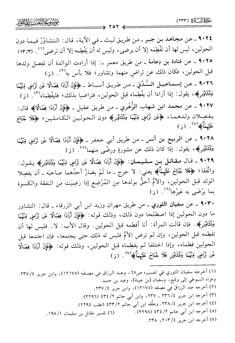 ٩٠٢٧ - عن محمد ابن شهاب الزُّهْري -من طريق عقيل- {فإن أرادا فصالا} قال: يفصِلان ولدهما، {عن تراض منهما وتشاور} دون الحولين الكاملين؛ {فلا جناح عليهما} (¬٤). (ز)