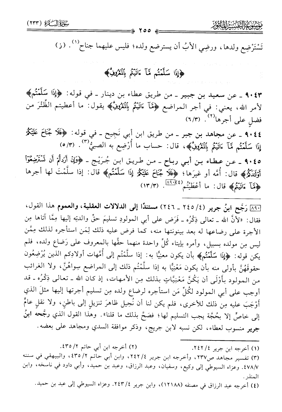 ٩٠٤٥ - عن عطاء بن أبي رباح -من طريق ابن جُرَيْج- {وإن أردتم أن تسترضعوا أولادكم} قال: أُمَّه أو غيرَها؛ {فلا جناح عليكم إذا سلمتم} قال: إذا سلَّمْتَ لها أجرها {ما آتيتم} قال: ما أعْطَيْتُم (¬٤) [٨٩٠]. (٣/ ١٣)