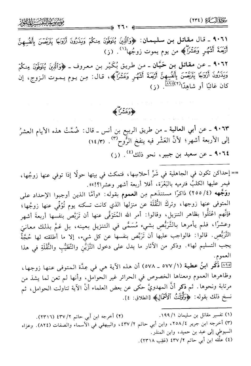 ٩٠٦٢ - عن مقاتل بن حَيّان -من طريق بُكَيْر بن معروف- {والذين يتوفون منكم ويذرون أزواجا يتربصن بأنفسهن أربعة أشهر وعشرا}، قال: مِن يوم يموت الزوج، إن كان غائبًا أو شاهِدًا (¬٢) [٨٩٥]. (ز)