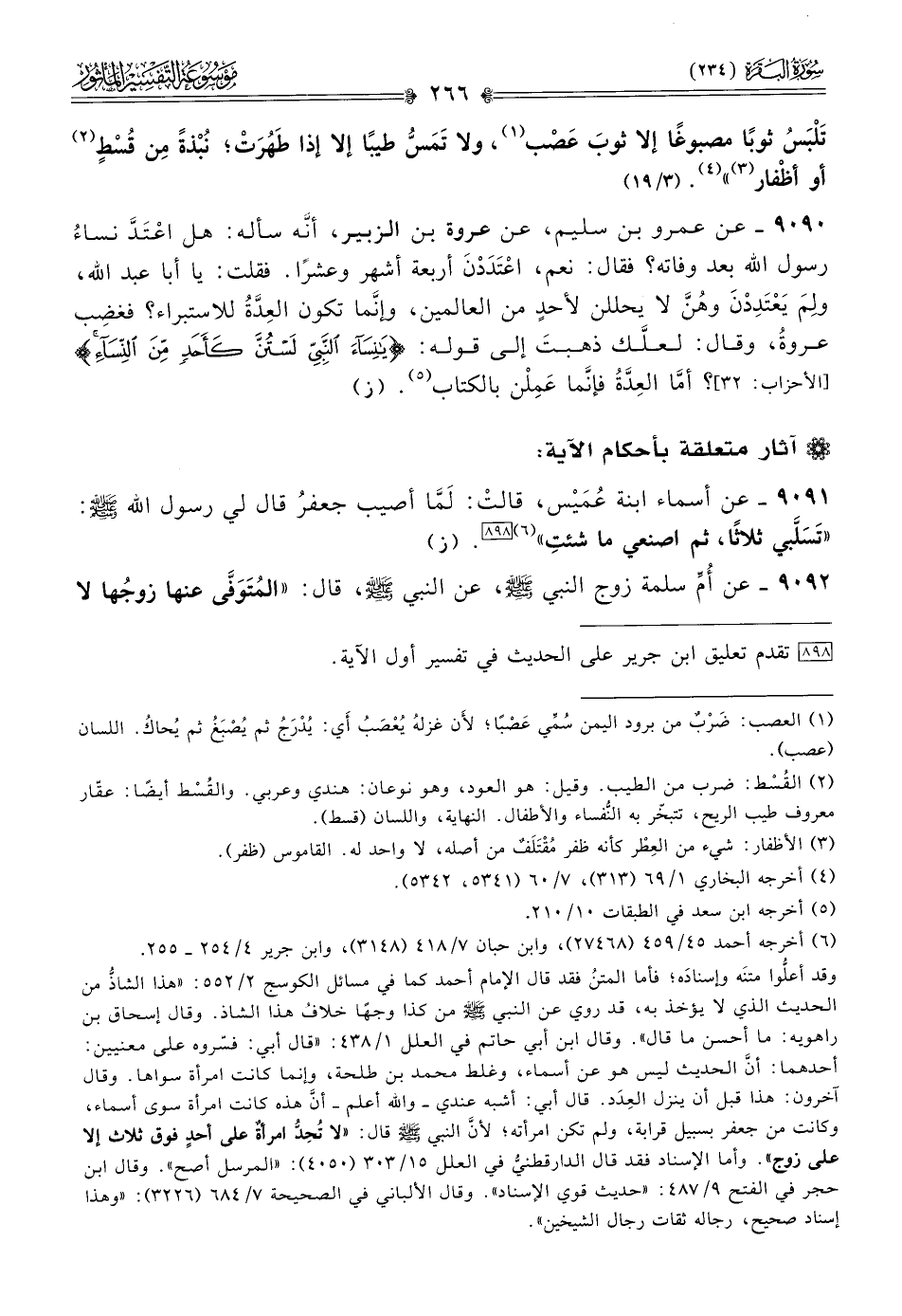 ٩٠٩١ - عن أسماء ابنة عُمَيْس، قالتْ: لَمّا أصيب جعفرُ قال لي رسول الله صلي الله عليه وسلم: «تَسَلَّبي ثلاثًا، ثم اصنعي ما شئتِ» (¬٦) [٨٩٨]. (ز)