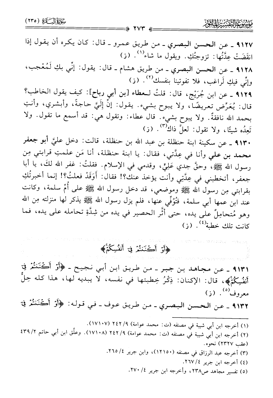 (¬٣) أخرجه عبد الرزاق في مصنفه (١٢١٥٠)، وابن جرير ٤/ ٢٦٥.