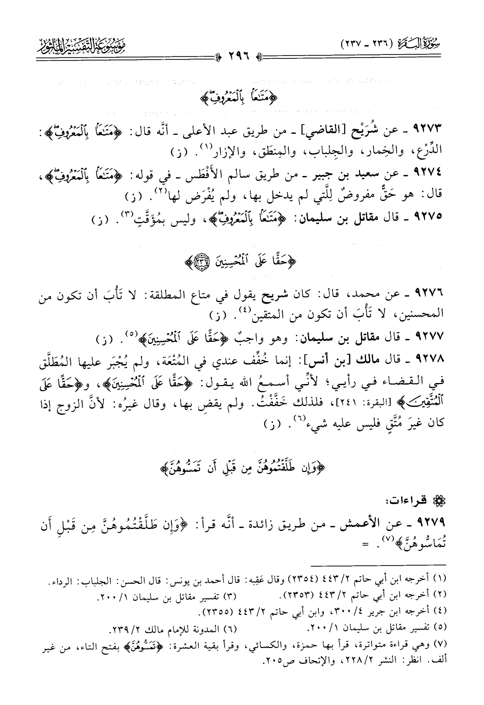 ٩٢٧٥ - قال مقاتل بن سليمان: {مَتاعًا بِالمَعْرُوفِ}، وليس بمُؤَقَّتٍ (¬٣). (ز)