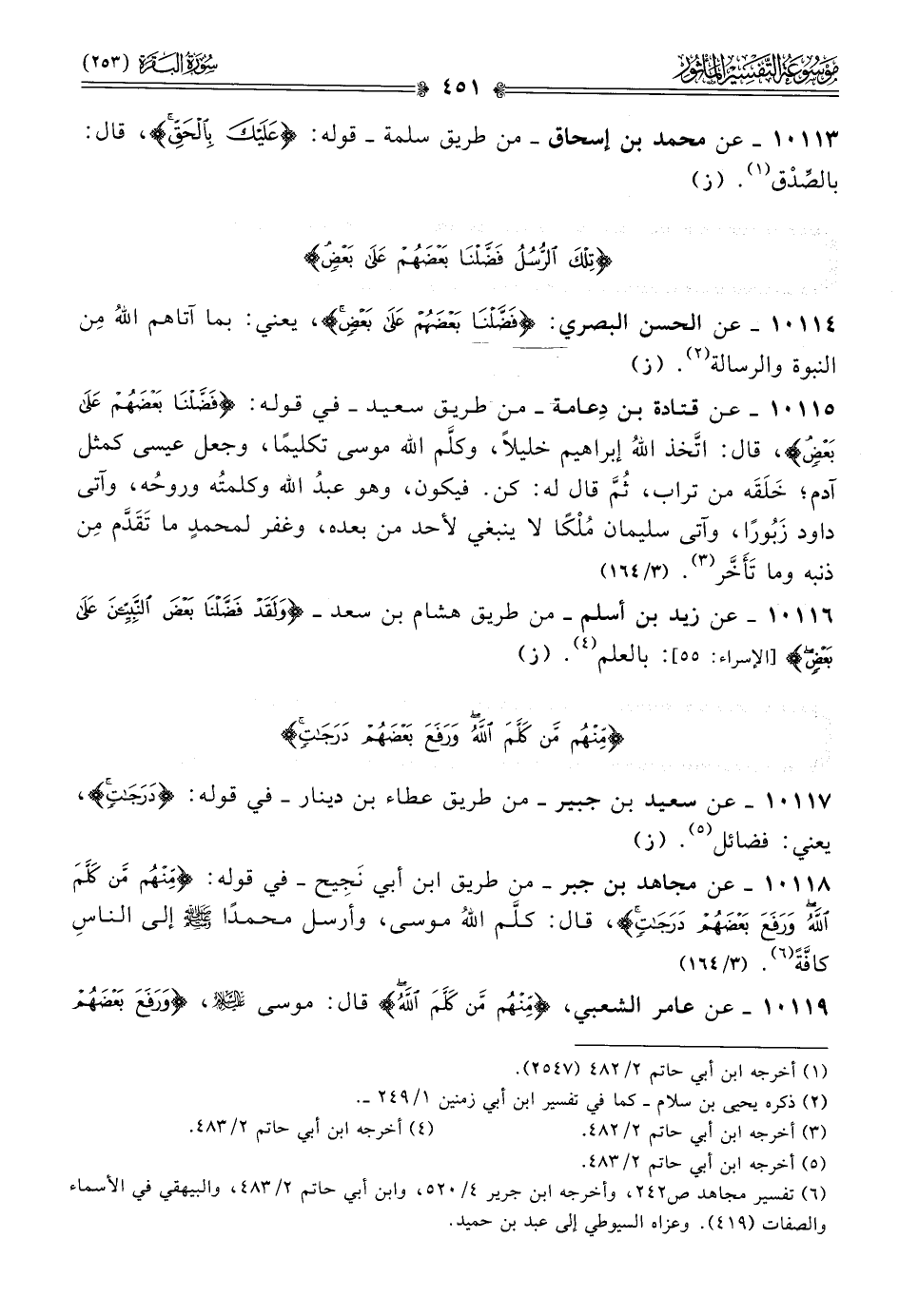 ١٠١١٩ - عن عامر الشعبي، {منهم من كلم الله} قال: موسى - عليه السلام -، {ورفع بعضهم