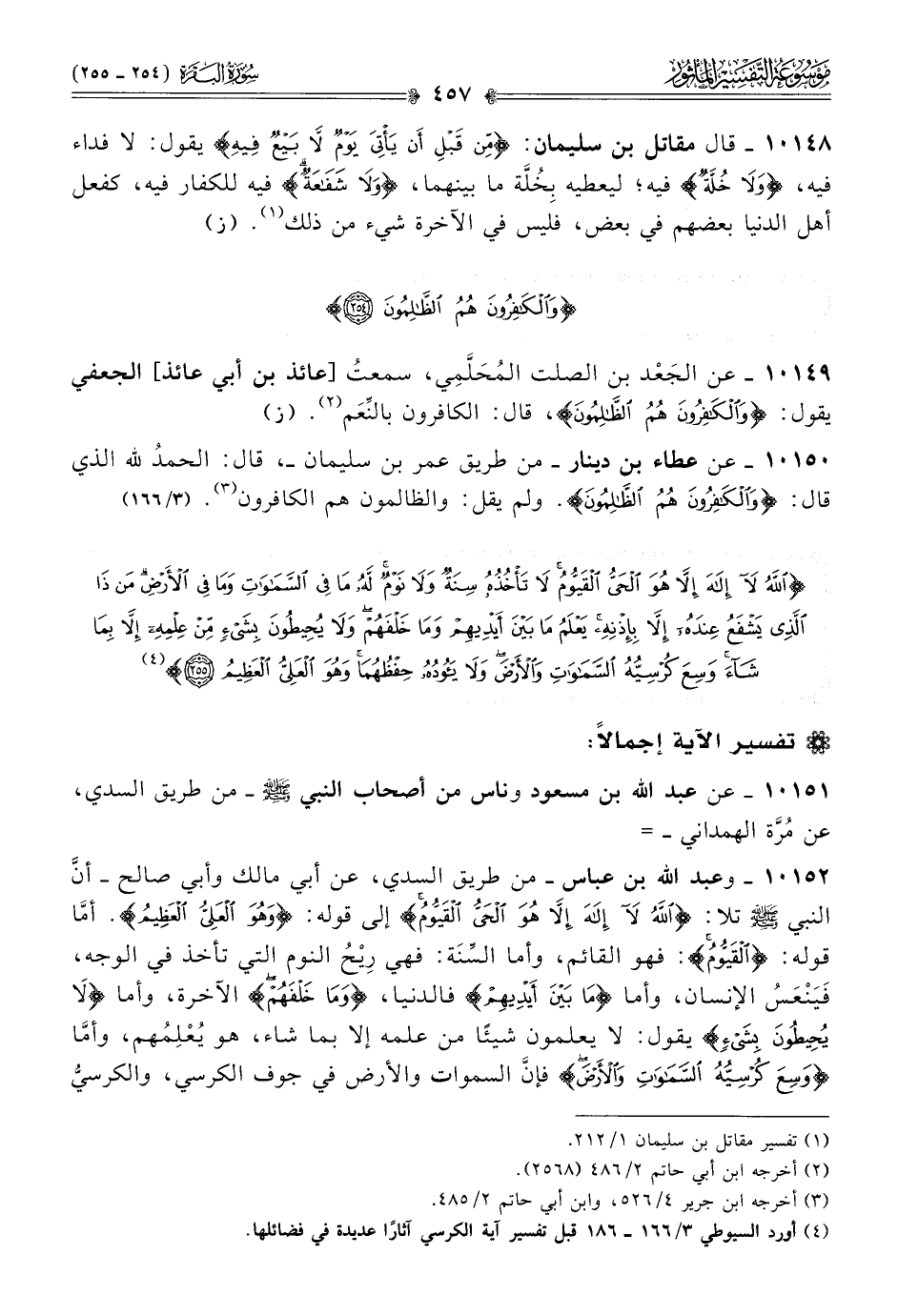 (¬٤) أورد السيوطي ٣/ ١٦٦ - ١٨٦ قبل تفسير اية الكرسي آثارًا عديدة في فضائلها.