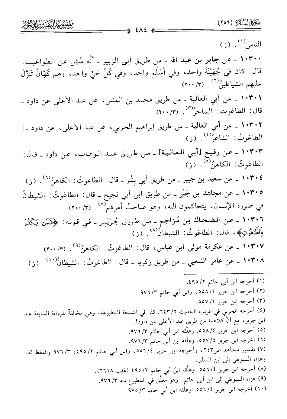 ١٠٣٠٨ - عن عامر الشعبي -من طريق زكريا- قال: الطاغوتُ: الشيطانُ (¬١٠). (ز)