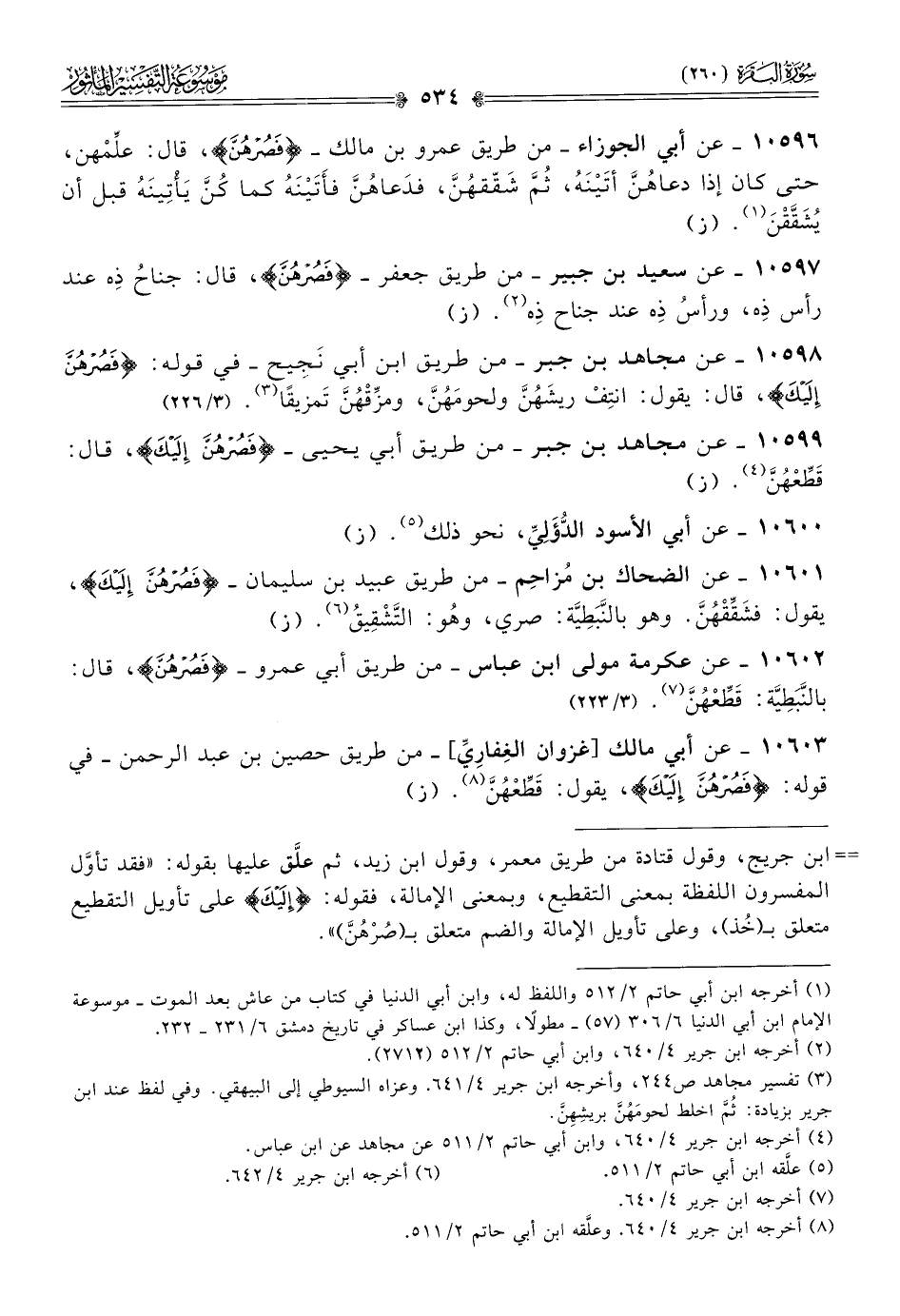 ١٠٦٠٢ - عن عكرمة مولى ابن عباس -من طريق أبي عمرو- {فصرهن}، قال: بالنَّبَطِيَّة: قَطِّعْهُنَّ (¬٧). (٣/ ٢٢٣)