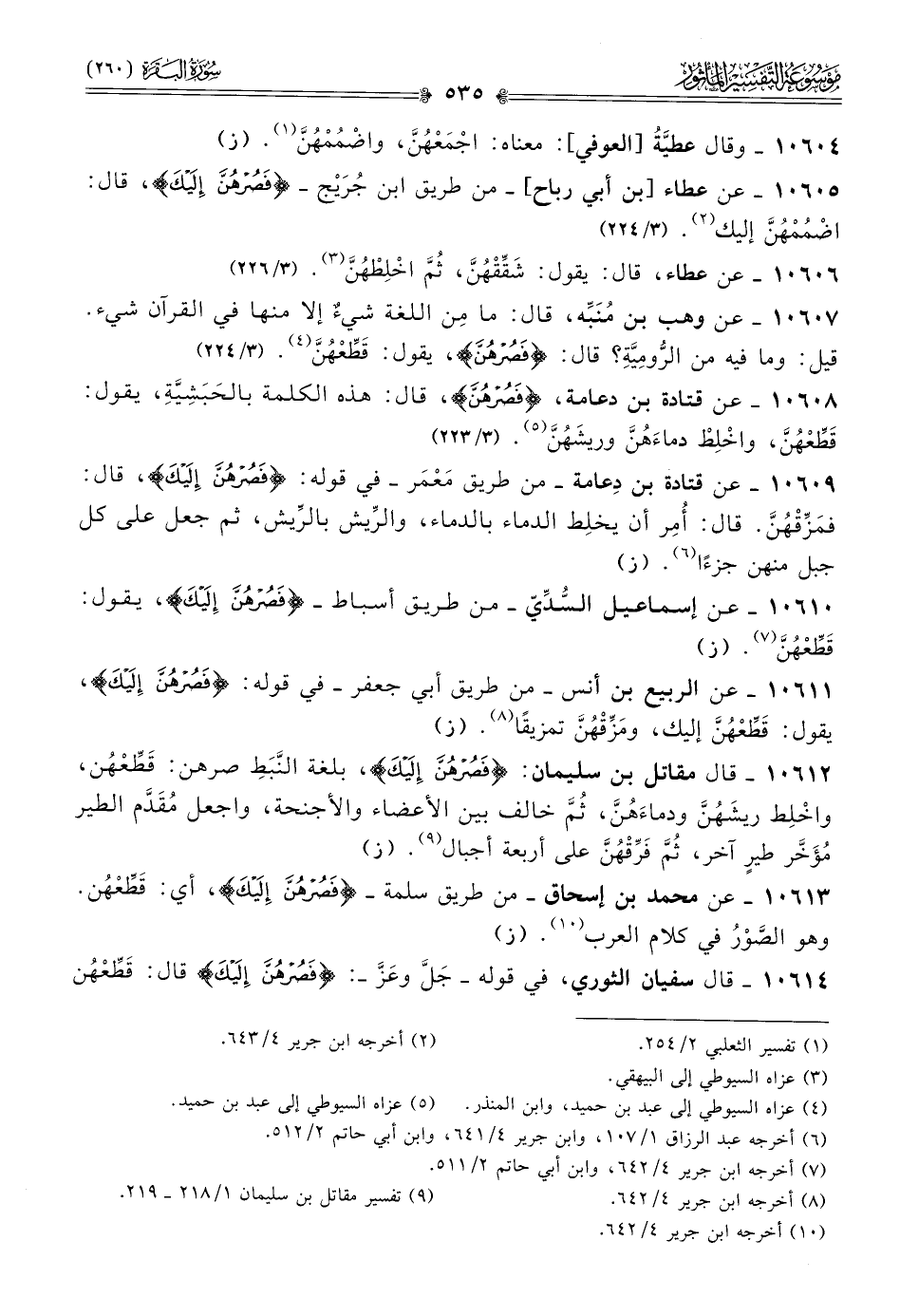 ١٠٦١٤ - قال سفيان الثوري، في قوله -جَلَّ وعَزَّ-: {فصرهن إليك} قال: قَطِّعْهُن