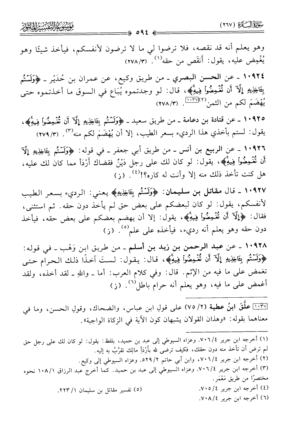 ١٠٩٢٤ - عن الحسن البصري -من طريق وكيع، عن عمران بن حُدَيْر- {ولستم بآخذيه إلا أن تغمضوا فيه}، قال: لو وجدتموه يُباع في السوق ما أخذتموه حتى يُهْضَمَ لكم من الثمن (¬٢) [١٠٣٧]. (٣/ ٢٧٨)