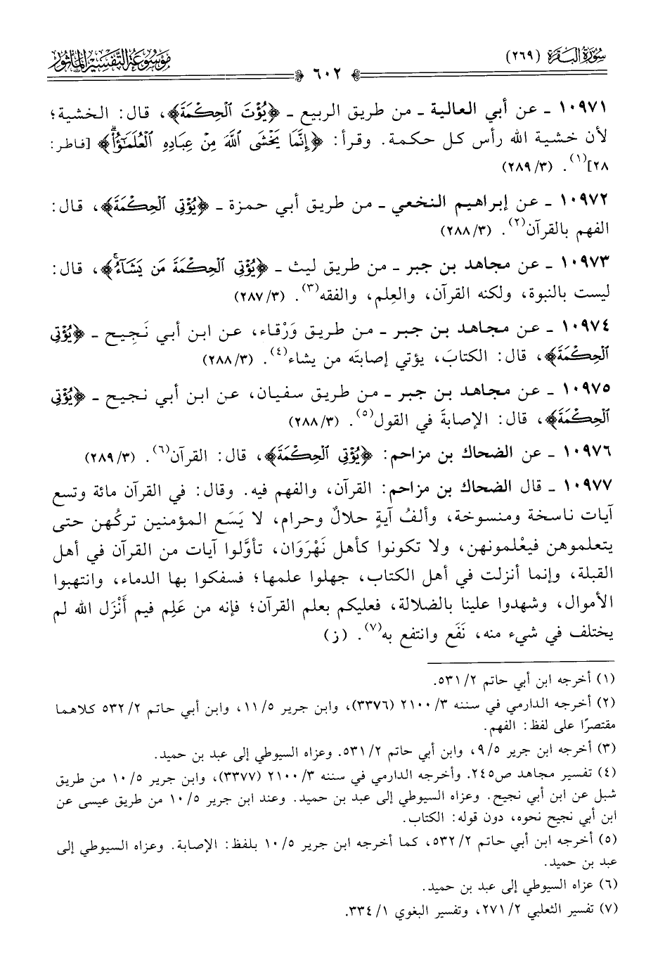١٠٩٧٦ - عن الضحاك بن مزاحم: {يؤتي الحكمة}، قال: القرآن (¬٦). (٣/ ٢٨٩)