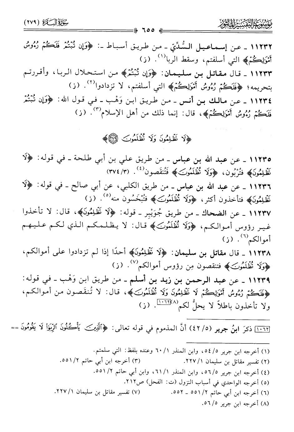 ١١٢٣٥ - عن عبد الله بن عباس -من طريق علي بن أبي طلحة- في قوله: {لا تَظْلِمُونَ} فتُرْبُون، {ولا تُظْلَمُونَ} فَتُنقَصون (¬٤). (٣/ ٣٧٣)