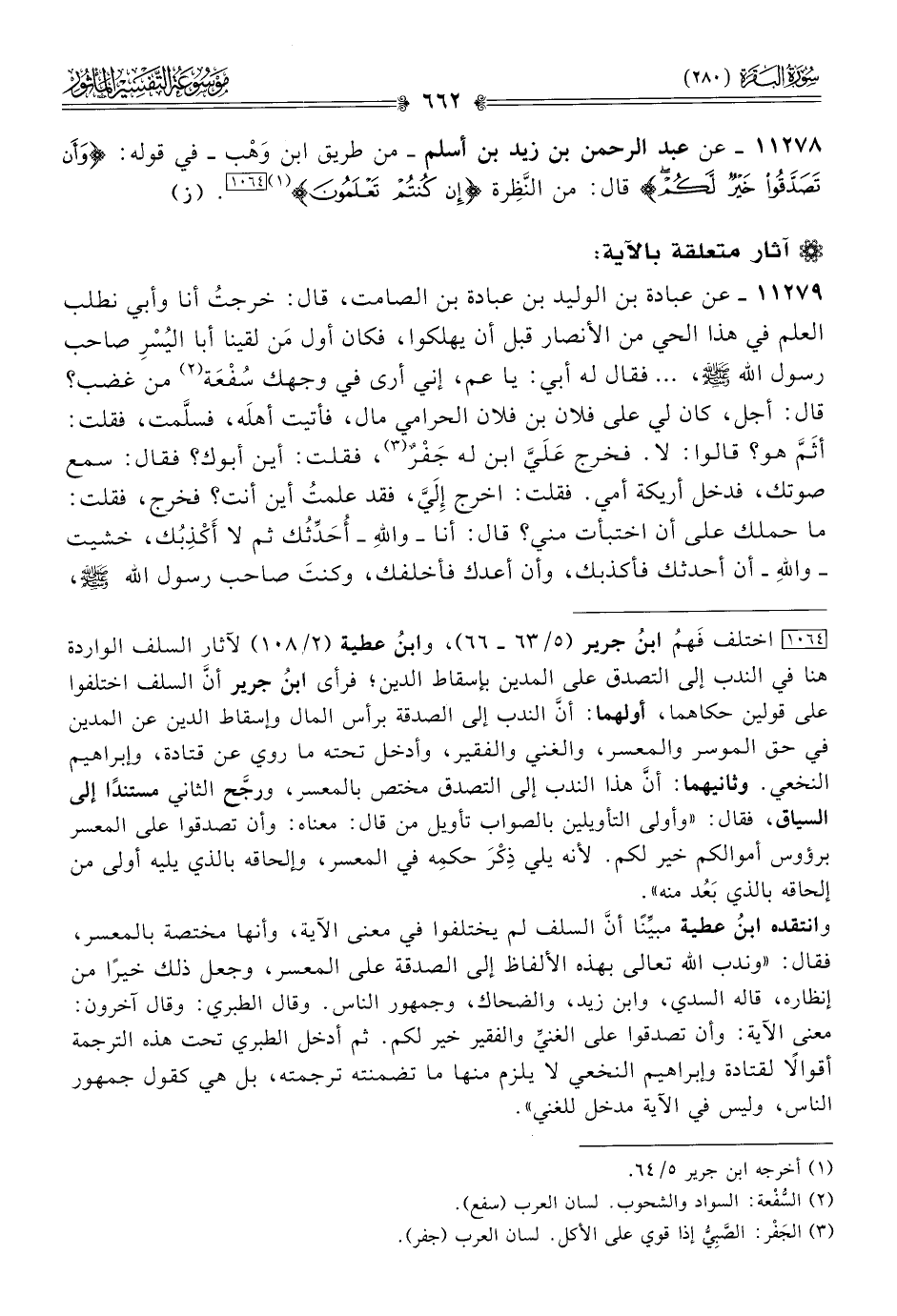 ١١٢٧٨ - عن عبد الرحمن بن زيد بن أسلم -من طريق ابن وهْب- في قوله: {وأن تصدقوا خير لكم} قال: من النَّظِرة {إن كنتم تعلمون} (¬١) [١٠٦٤]. (ز)