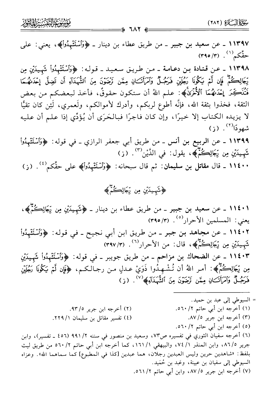 ١١٣٩٩ - عن الربيع بن أنس -من طريق أبي جعفر الرازي- في قوله: {واستشهدوا شهيدين من رجالكم}، يقول: في الدَّيْن (¬٣). (ز)