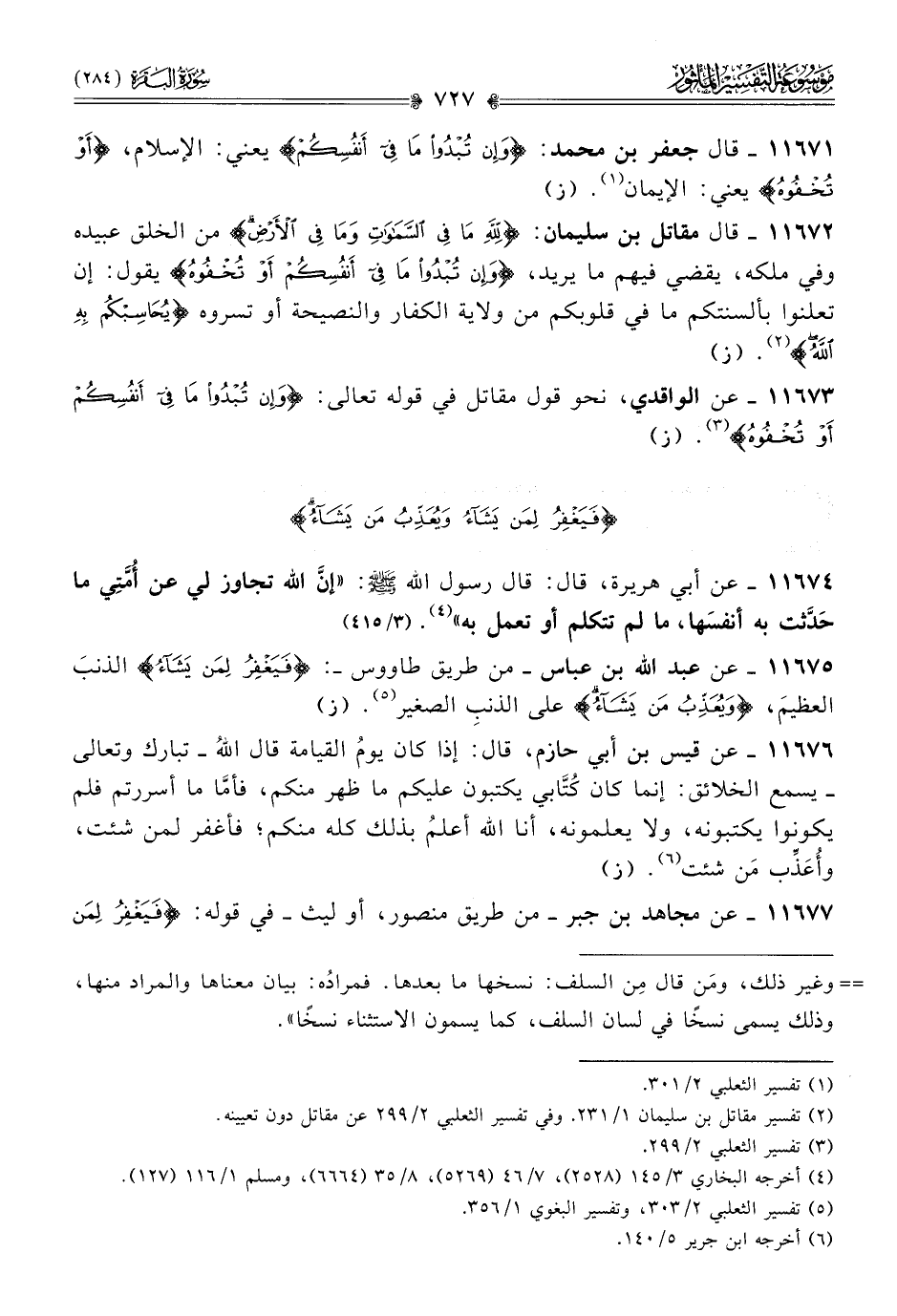 ١١٦٧١ - قال جعفر بن محمد: {وَإِنْ تُبْدُوا مَا فِي أَنْفُسِكُمْ} يعني: الإسلام، {أوْ تُخْفُوهُ} يعني: الإيمان (¬١). (ز)