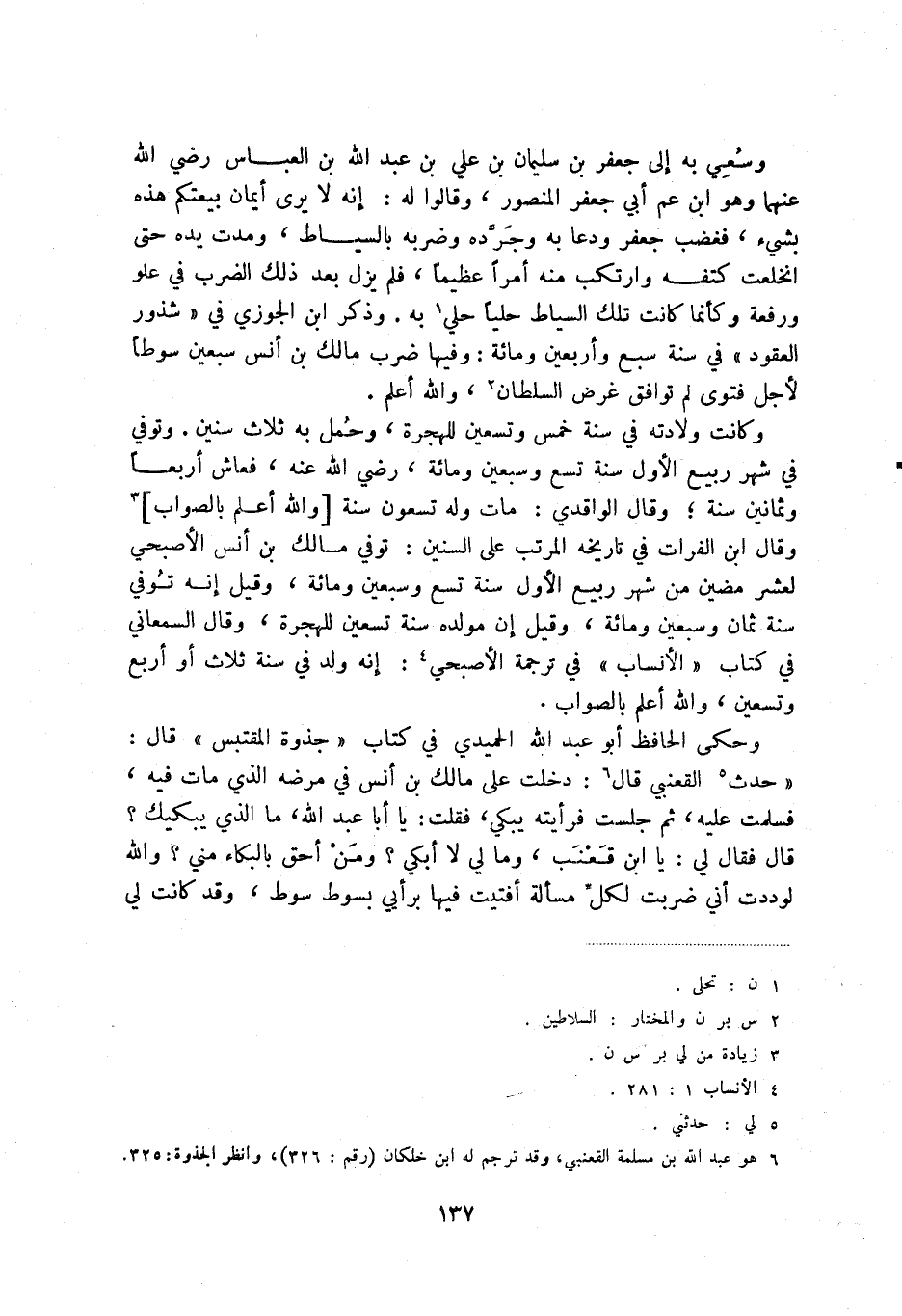 (6) هو عبد الله بن مسلمة القعنبي، وقد ترجم له ابن خلكان (رقم: 326) ، وانظر الجذوة: 325.