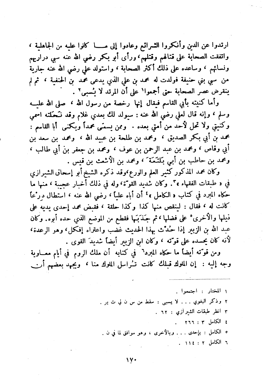 وكان محمد المذكور كثير العلم والورع، وقد ذكره الشيخ أبو إسحاق الشيرازي في " طبقات الفقهاء " (3) . وكان شديد القوة، وله في ذلك أخبار عجيبة، منها ما حكاه المبرد في كتاب الكامل (4) أن أباه عليا، رضي الله عنه، استطال درعا كانت له، فقال: لينقص منها كذا وكذا حلقة، فقبض محمد إحدى يديه على ذيلها والأخرى (5) على ضلها، ثم جذبها فقطع من الموضع الذي حدده أبوه. وكان عبد الله بن الزبير إذا حدث بهذا الحديث غضب واعتراه إفكل، وهو الرعدة، لأنه كان يحسده على قوته، وكان ابن الزبير أيضا شديد القوى.
