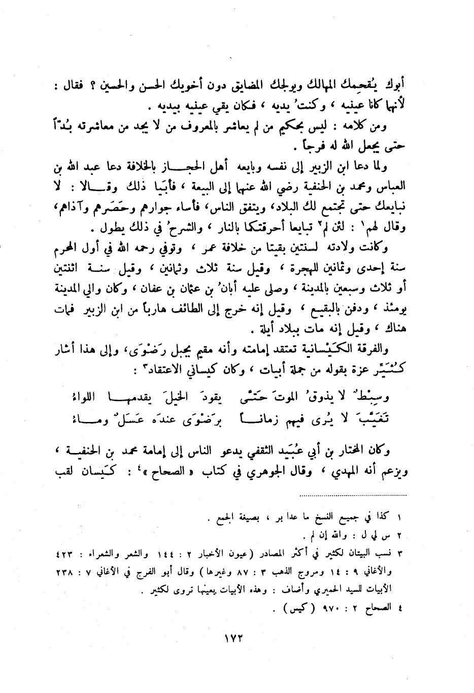 تغيب لا يرى فيهم زمانا ... برضوى عنده عسل وماء وكان المختار بن أبي عبيد الثقفي يدعو الناس إلى إمامة محمد بن الحنفية، ويزعم أنه المهدي، وقال الجوهري في كتاب " الصحاح " (4) : كيسان لقب
