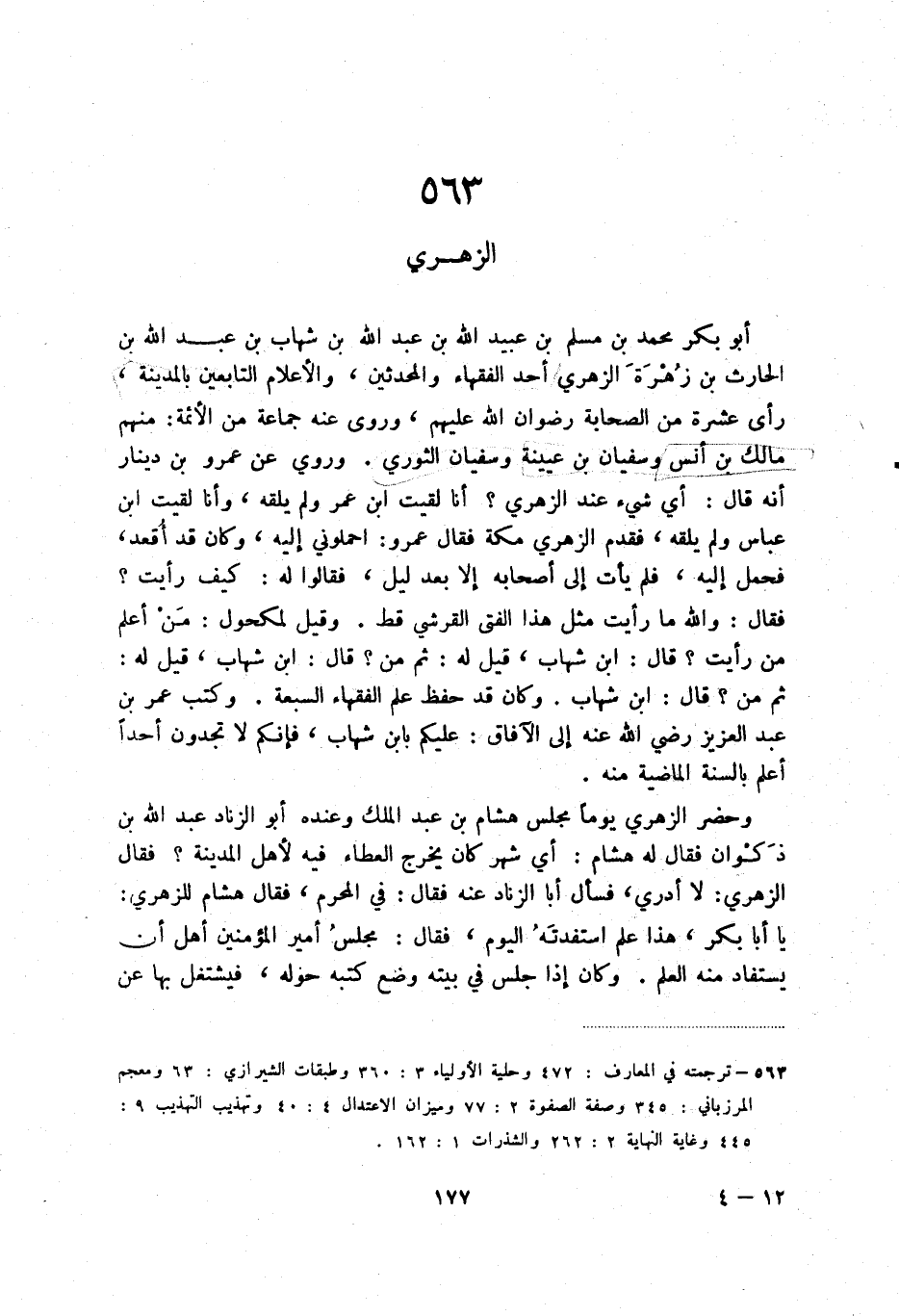 أبو بكر محمد بن مسلم بن عبيد الله بن عبد الله بن شهاب بن عبد الله بن الحارث بن زهرة الزهري أحد الفقهاء والمحدثين، والأعلام التابعين بالمدينة، رأى عشرة من الصحابة رضوان الله عليهم، وروى عنه جماعة من الأئمة: منهم مالك بن أنس وسفيان بن عيينة وسفيان الثوري. وروي عن عمرو بن دينار أنه قال: أي شيء عند الزهري أنا لقيت ابن عمر ولم يلقه، وأنا لقيت ابن عباس ولم يلقه، فقدم الزهري مكة فقال عمرو: احملوني إليه، وكان قد أقعد، فحمل إليه، فلم يأت إلى أصحابه إلا بعد ليل، فقالوا له: كيف رأيت فقال: والله ما رأيت مثل هذا الفتى القرشي قط. وقيل لمكحول: من أعلم من رأيت قال: ابن شهاب، قيل له: ثم من قال: ابن شهاب، قيل له: ثم من قال: ابن شهاب. وكان قد حفظ علم الفقهاء السبعة. وكتب عمر بن عبد العزيز رضي الله عنه إلى الآفاق: عليكم بابن شهاب، فإنكم لا تجدون احدا أعلم بالسنة الماضية منه.