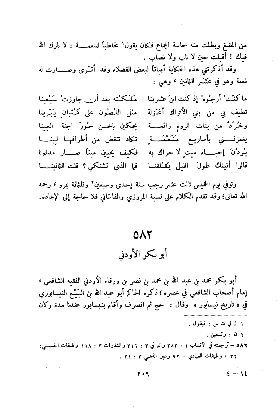 قالوا أنينك طول الليل يقلقنا ... فما الذي تشتكي قلت الثمانينا وتوفي يوم الخميس ثالث عشر رجب سنة إحدى وسبعين (2) وثلثمائة بمرو، رحمه الله تعالى، وقد تقدم الكلام على نسبة المرزوي والفاشاني فلا حاجة إلى الإعادة.