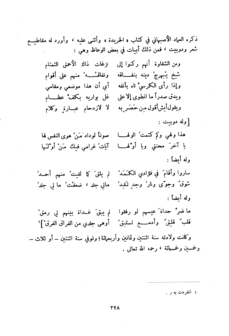 قلب قلق وأدمع تستبق ... أو هي جلدي من الفراق الفرق] (1) وكانت ولادته سنة اثنتين وثمانين وأربعمائة، وتوفي سنة اثنتين - أو ثلاث - وخمسين وخمسمائة، رحمه الله تعالى.