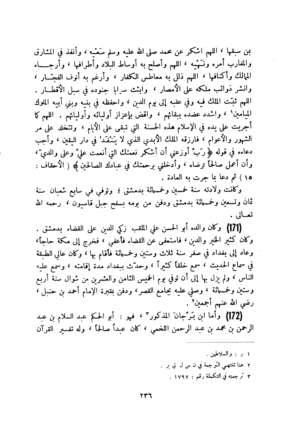 (172) وأما ابن برجان المذكور (3) ، فهو: أبو الحكم عبد السلام بن عبد الرحمن بن محمد بن عبد الرحمن اللخمي، كان عبدا صالحا، وله تفسير القرآن