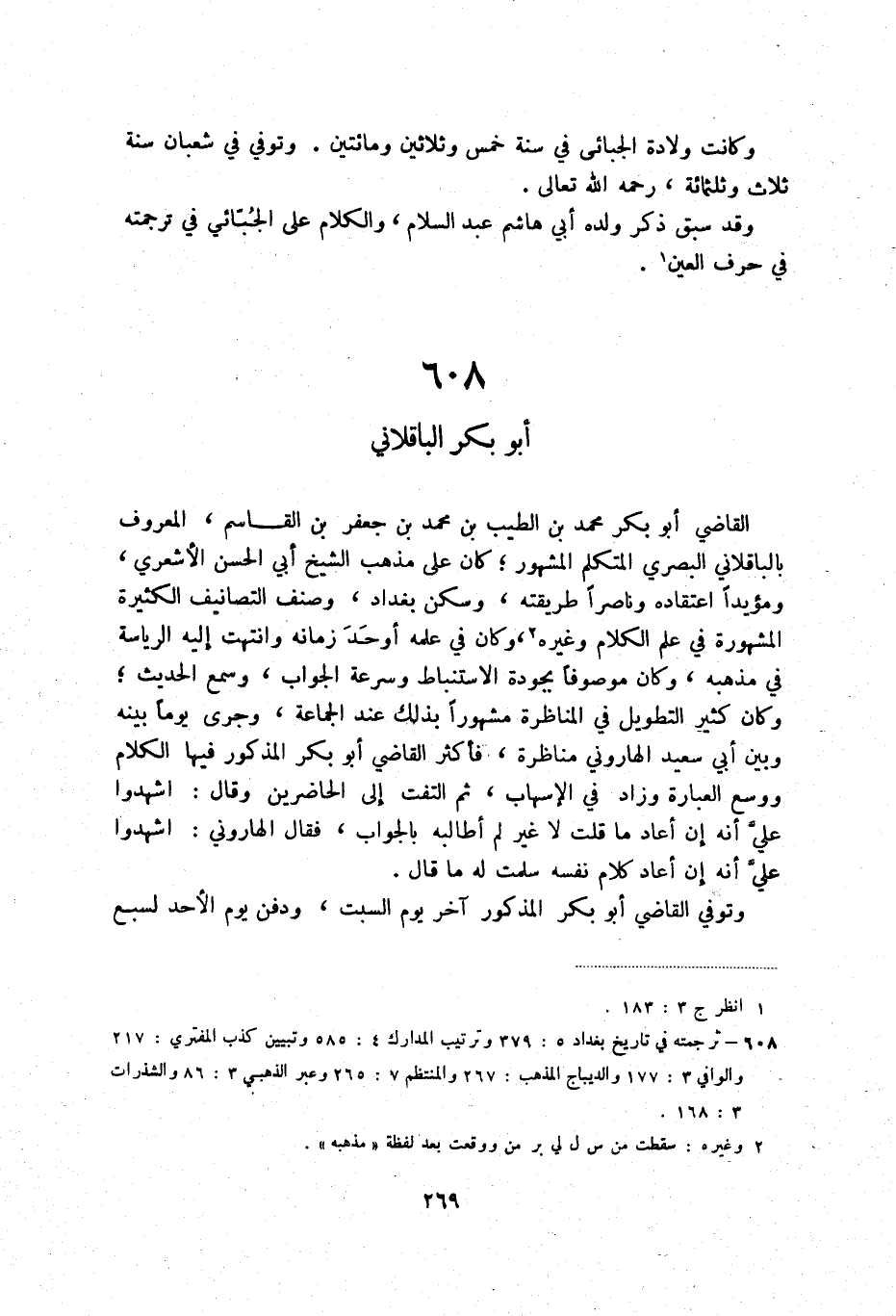 (2) ترجمته في تاريخ سبغداد 5: 379 وترتيب المدارك 4: 585 وتبيين كذب المفتري: 217 والوافي 3: 177 والديباج المذهب: 267 والمنتظم 7: 265 وعبر الذهبي 3: 86 والشذرات 3: 168.