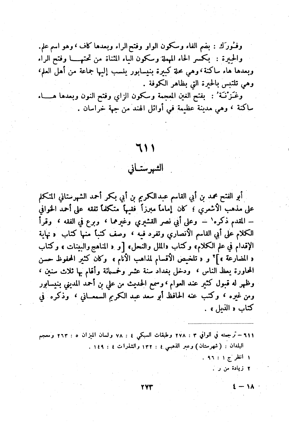 (1) ترجمته في الوافي 3: 278 وطبقات السبكي 4: 78 ولسان الميزان 5: 263 ومعجم البلدان: (شهرستان) وعبر الذهبي 4: 132 والشذرات 4: 149.
